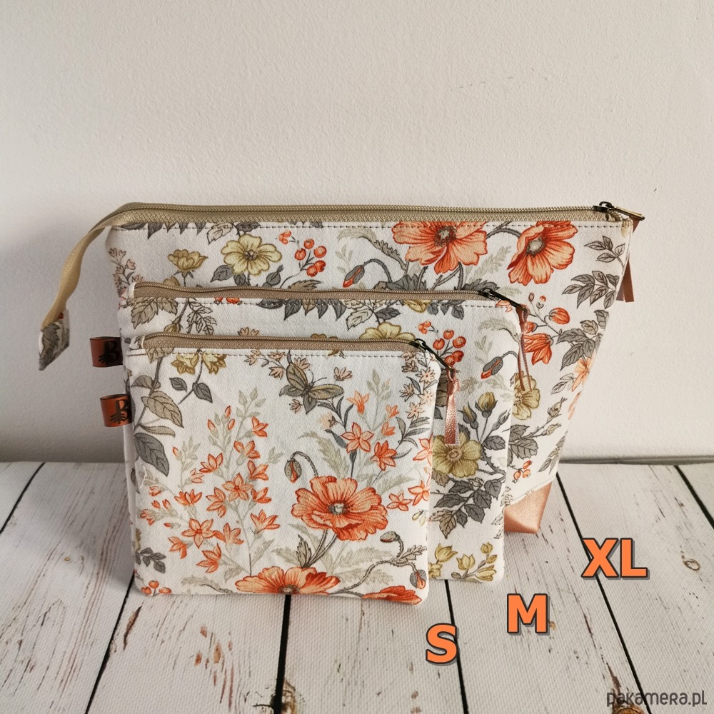 Saszetka zapinana na zamek, posiada bawełnianą podszewkę.