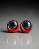 Okrągłe, lekko nieregularne ceramiczne kolczyki w formie sztyftów, ręcznie wykonane z delikatnej gliny kamionkowej, jednostronnie szkliwione mieszanką czerwonych i szarych szkliw z efektem plamek i subtelnym połyskiem, na antyalergicznych sztyftach w kolorze srebrnym. Średnica ok. 11mm.Polecam