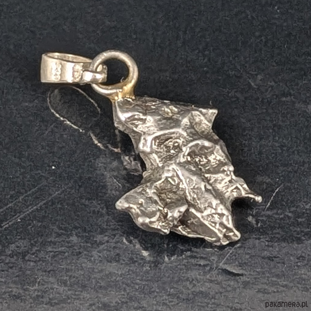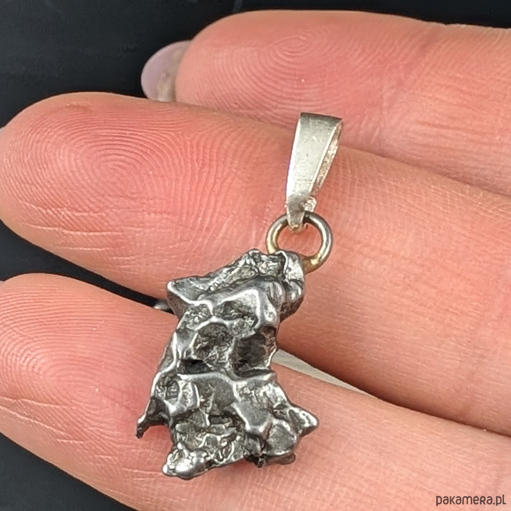 Wisiorek z meteorytem żelaznym Campo del Cielo, który znaleziono w 1576 roku w Argentynie. Krawatka srebro 925. Uniwersalny, dla niego lub dla niej. Wymiary 18 X 14 mm. Długość max 32 mm. Waga wisiora 3,8 g. Do meteorytu dołączona zostanie metryka z datą, miejscem spadku i wagą. Wisiorek zostanie zapakowany w ozdobne pudełeczko.