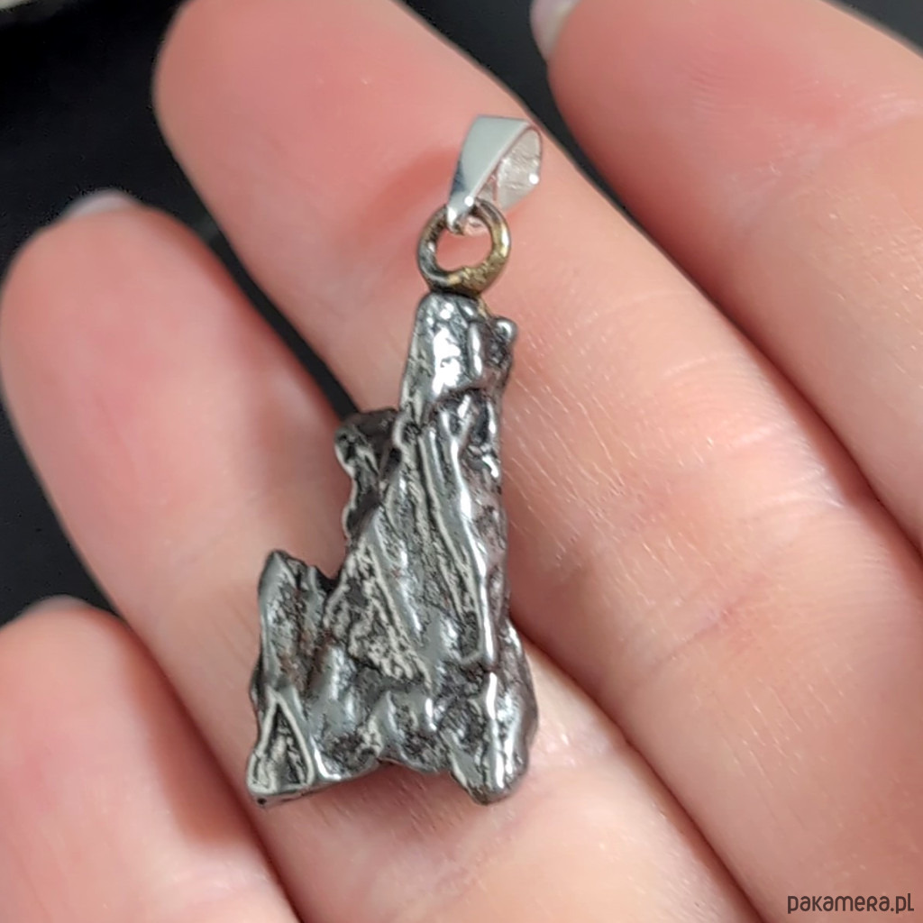 Wisiorek z okazałym meteorytem żelaznym Campo del Cielo, który znaleziono w 1576 roku w Argentynie. Krawatka srebro 925. Uniwersalny, dla niego lub dla niej. Wymiary 22 x 12 mm. Długość max 35 mm. Waga wisiora 6 g. Do meteorytu dołączona zostanie metryka z datą, miejscem spadku i wagą. Wisiorek zostanie zapakowany w ozdobne pudełeczko.