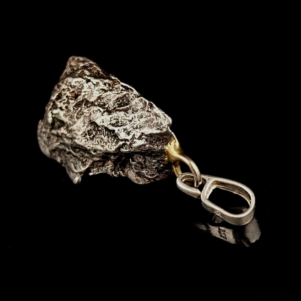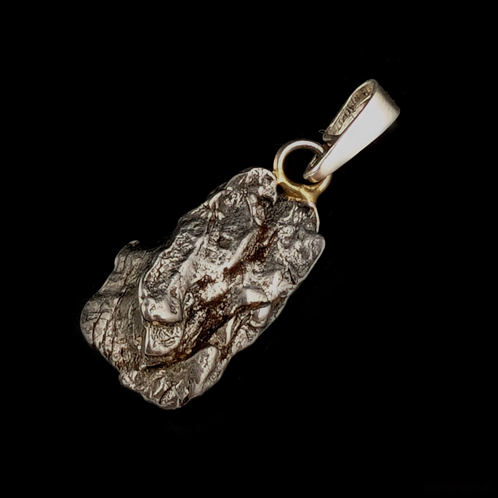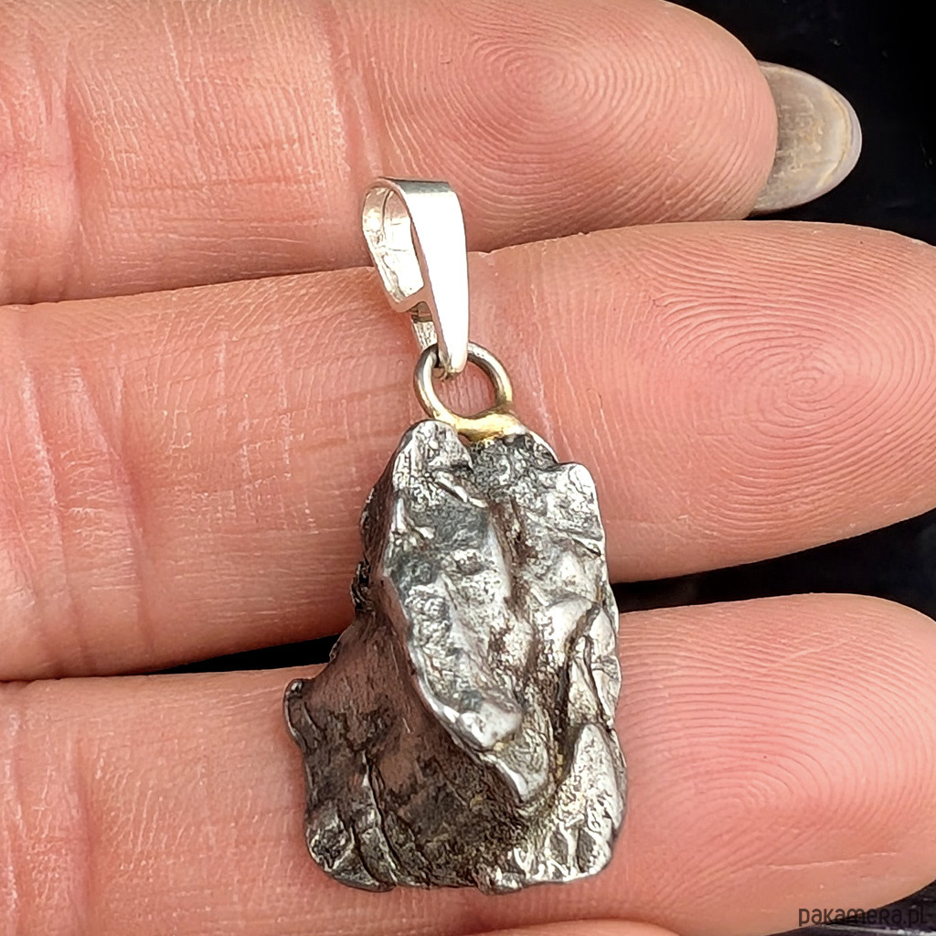 Wisiorek z meteorytem żelaznym Campo del Cielo, który znaleziono w 1576 roku w Argentynie. Krawatka srebro 925. Uniwersalny, dla niego lub dla niej. Wymiary 20 x 16 mm. Długość max 32 mm. Waga wisiora 6,7 g. Do meteorytu dołączona zostanie metryka z datą, miejscem spadku i wagą. Wisiorek zostanie zapakowany w ozdobne pudełeczko.