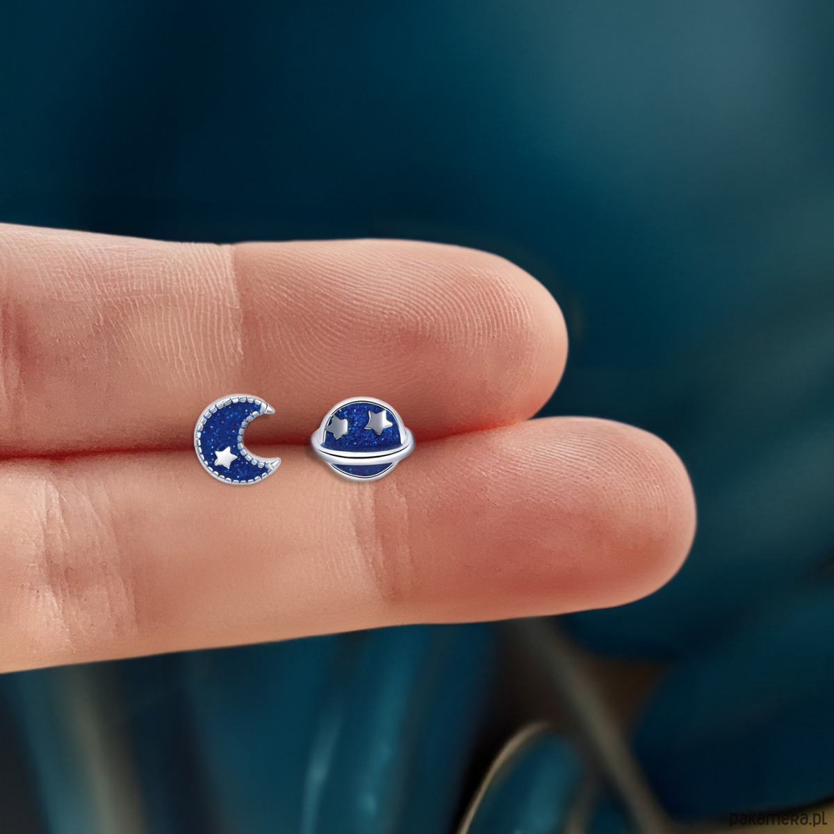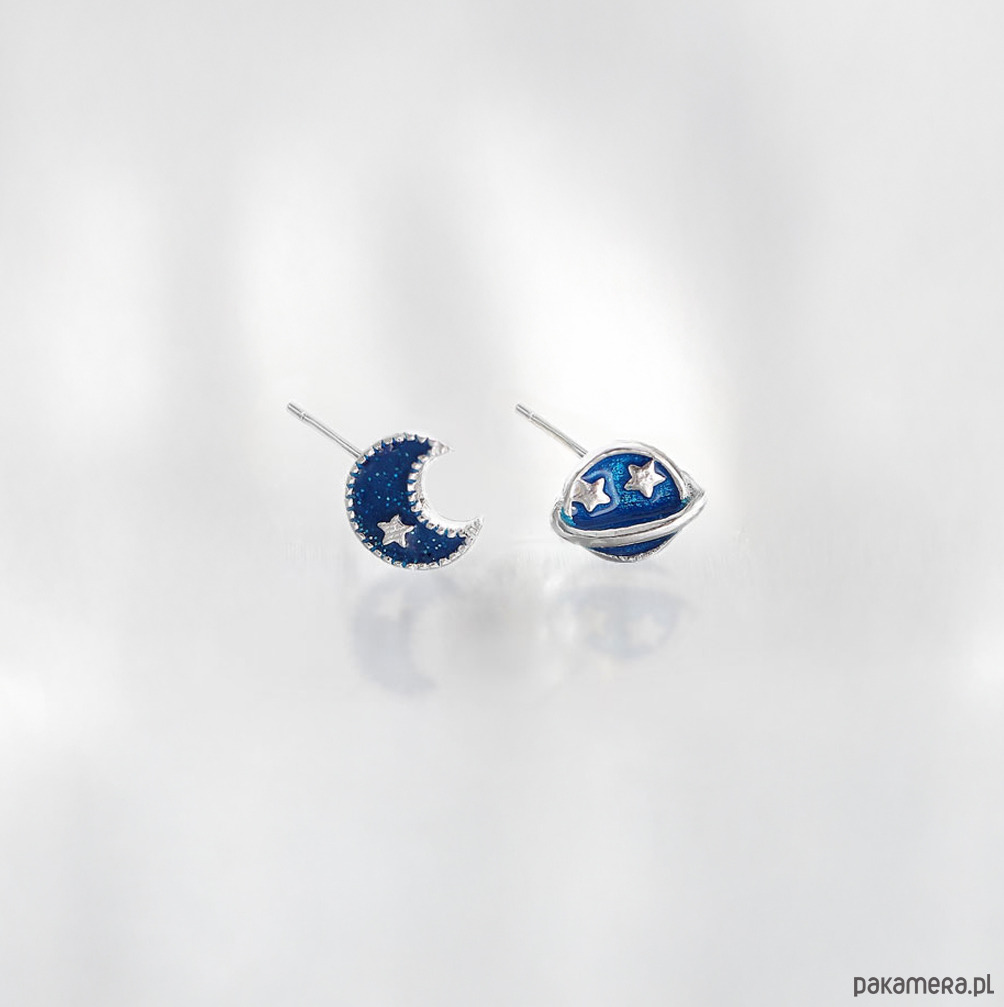Odkryj magię nocnego nieba dzięki kolczykom wkrętkom Kosmos . Te unikalne kolczyki mini wkręty z motywem księżyca i planety łączą w sobie subtelny blask gwiazd z głębokim odcieniem niebieskiego, tworząc idealny dodatek do każdej stylizacji.