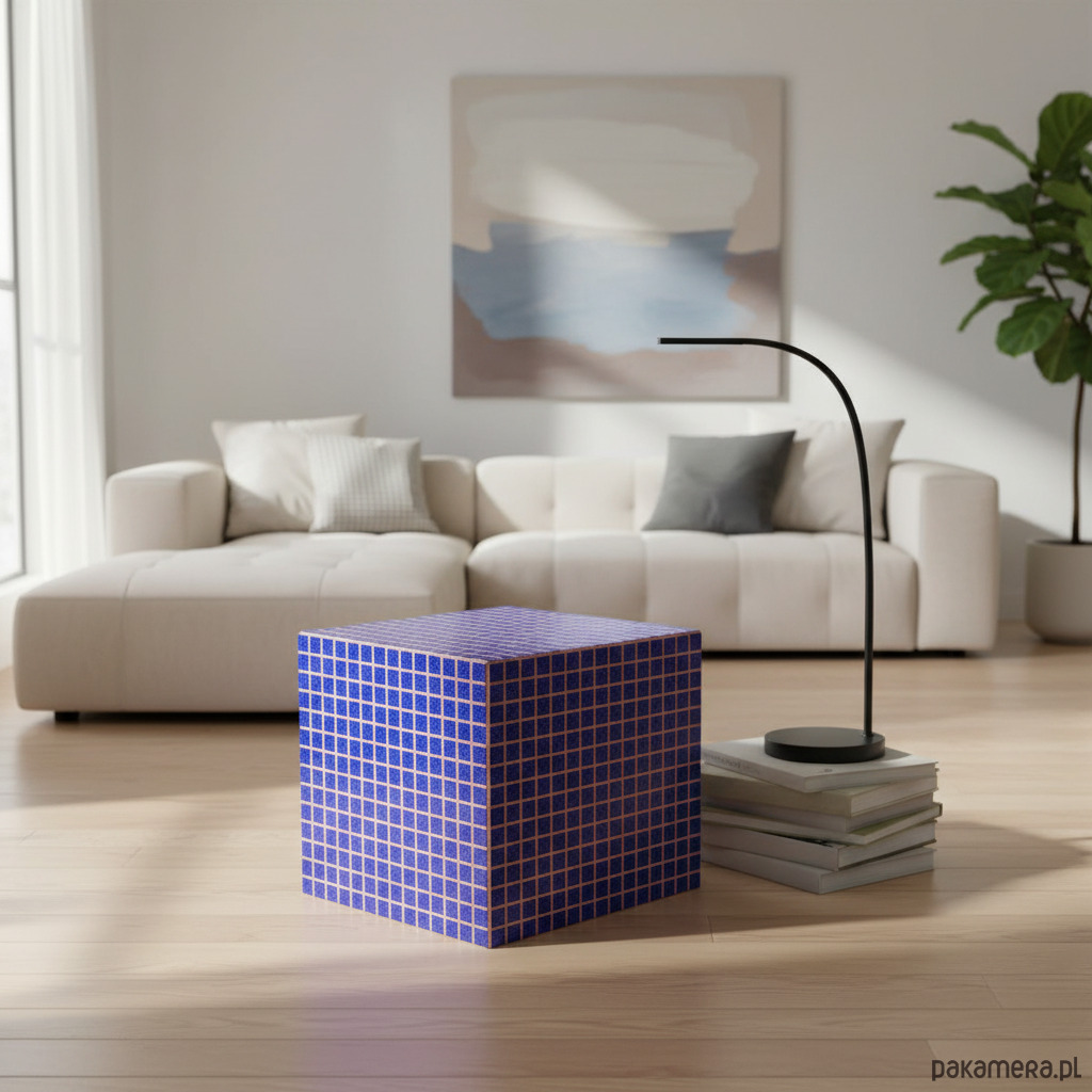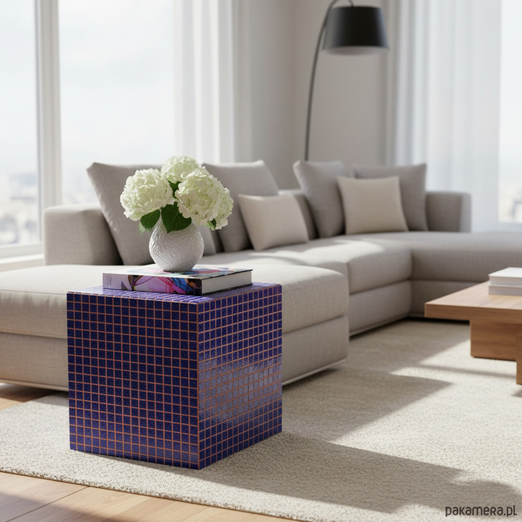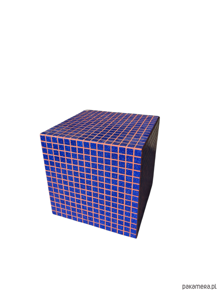 Ceramiczna kostka mozaikowa z rdzeniem ze sklejki to wyjątkowy element wyposażenia wnętrz, który łączy funkcjonalność, trwałość i nowoczesną estetykę. Wykonana ręcznie w 100% w polskim atelier mrcube.studio, charakteryzuje się solidną podstawą ze sklejki, starannie pokrytą ręcznie układaną mozaiką ceramiczną. Kompaktowe wymiary 33,5 × 33,5 cm ułatwiają wkomponowanie jej w różnorodne przestrzenie.