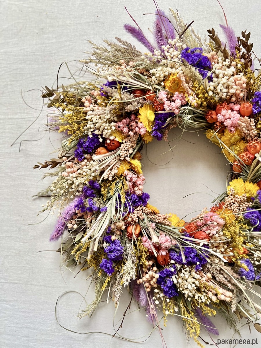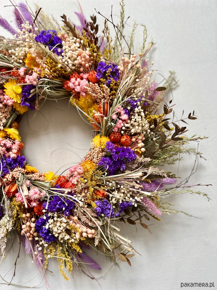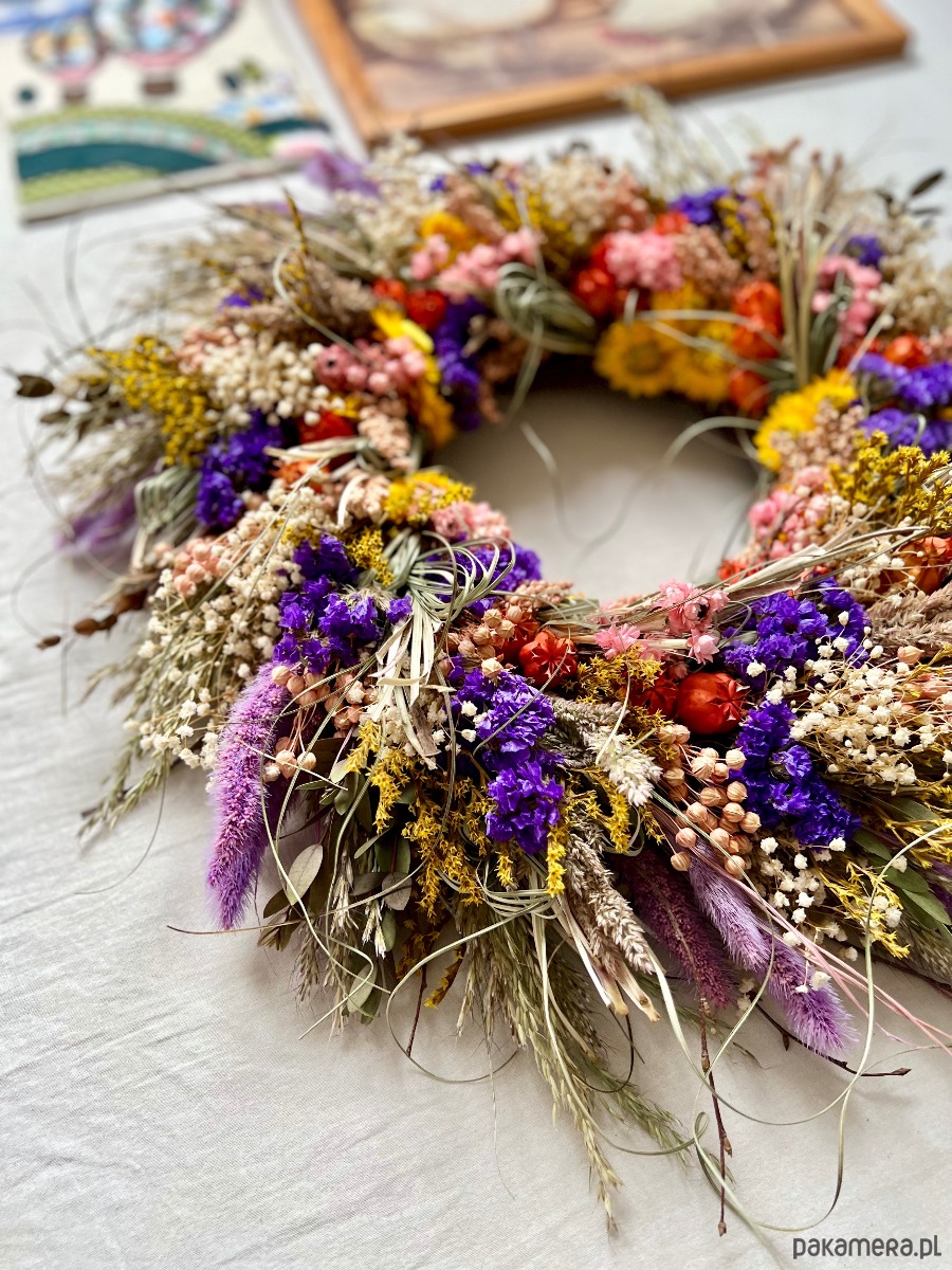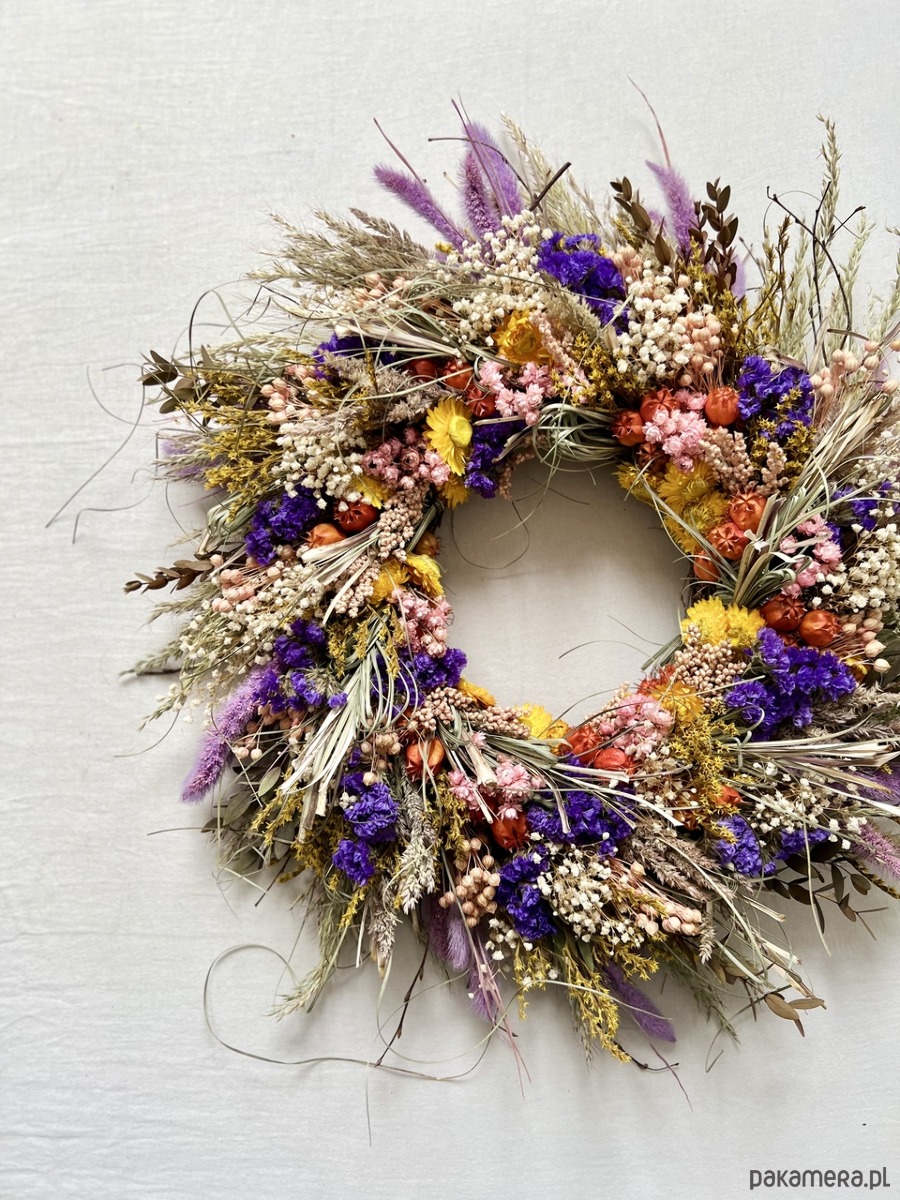 Wianek z suszonych kwiatów, cudownie pachnący letnią łąką.