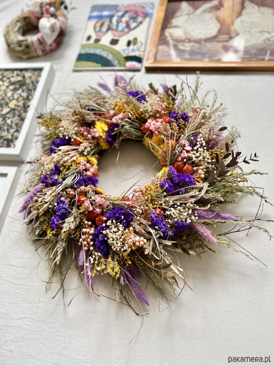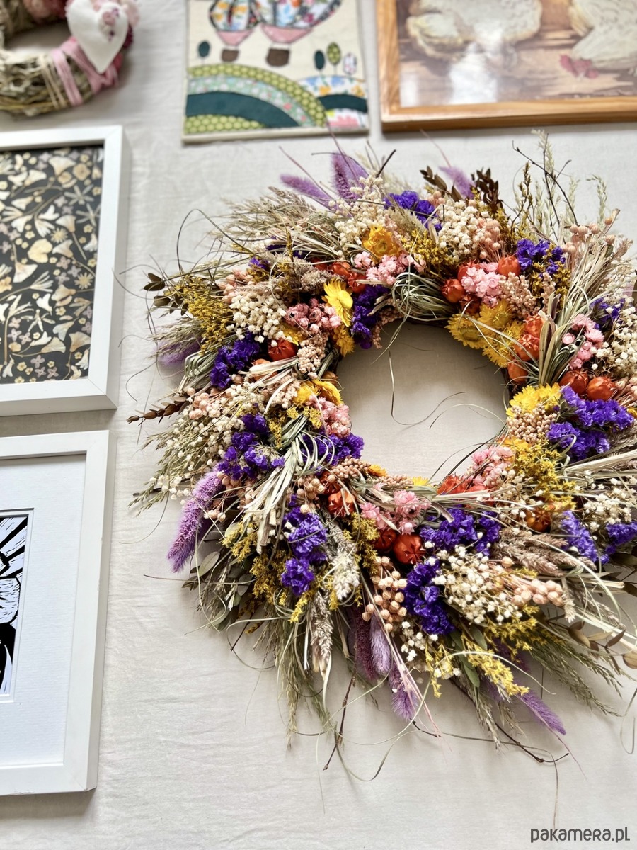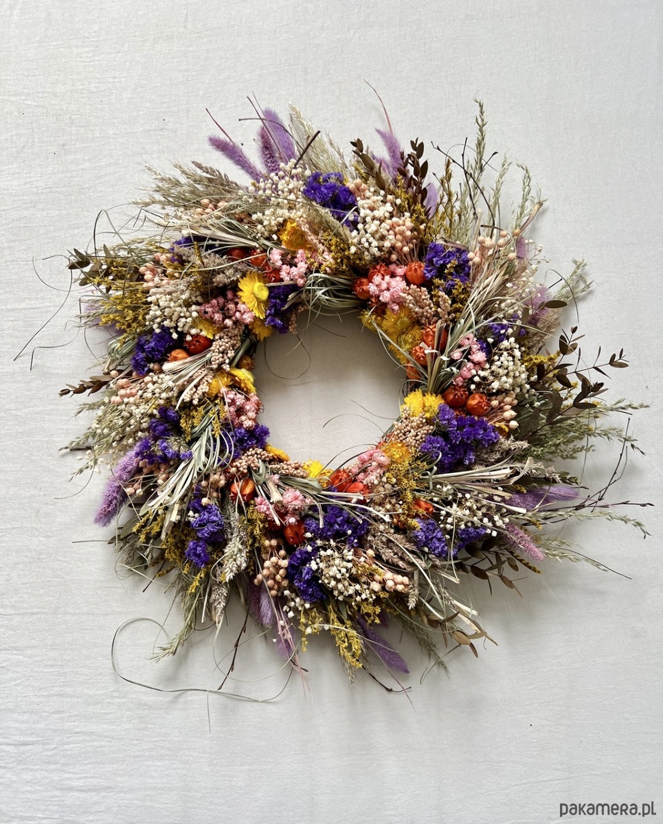 Wianek z suszonych kwiatów, cudownie pachnący letnią łąką.
