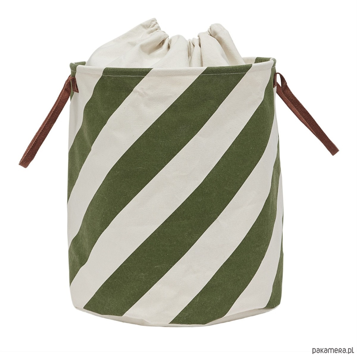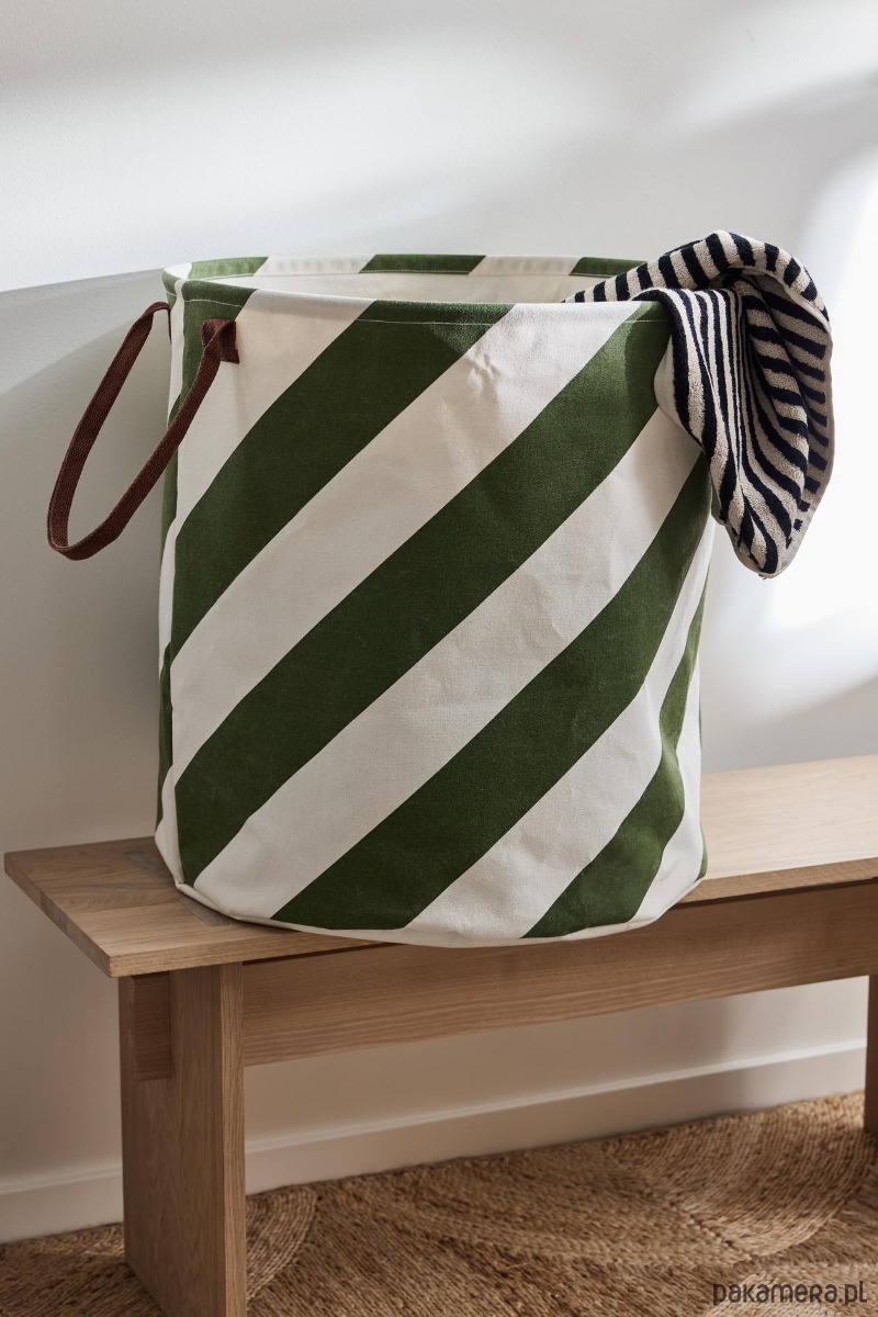 Funkcjonalny kosz na przechowywanie z wzorem w paski Kosz Sakki Storage Basket to połączenie praktyczności i stylu. Wzór w paski nadaje mu zabawnego charakteru, wprowadzając do wnętrza świeżość i oryginalność. Wyposażony w zamykany sznurkiem otwór, kosz doskonale sprawdzi się do przechowywania i transportu kołder, poduszek czy innych domowych akcesoriów.