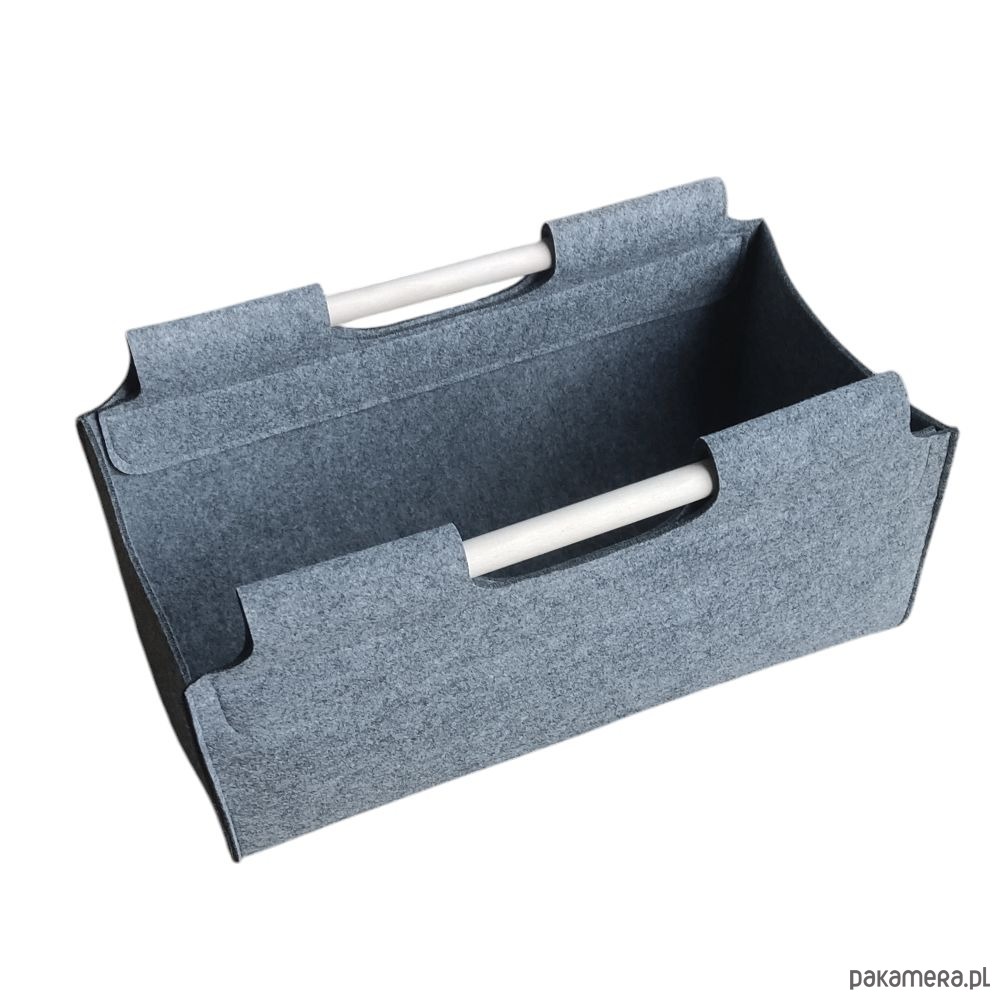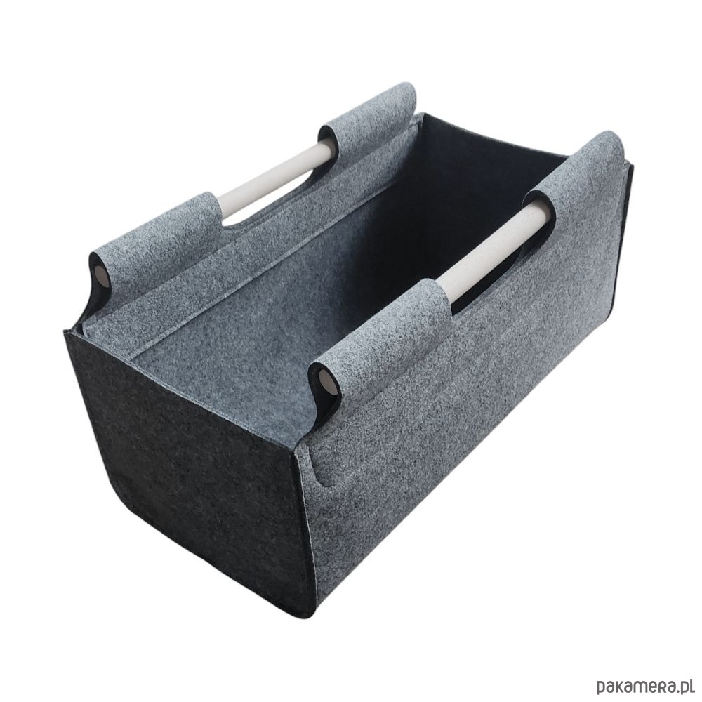 Kosz filcowy z drewnianymi uchwytami - szeroki - szary