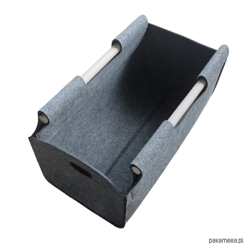 Kosz z filcu o eleganckim, minimalistycznym designie, który świetnie komponuje się w nowoczesnych wnętrzach. Wykonany z grubego filcu o grubości 4 mm, co zapewnia mu trwałość i solidność, a jednocześnie pozostaje lekki i łatwy do przenoszenia. Dzięki drewnianym uchwytom, kosz zyskuje naturalny, ciepły akcent, który doskonale pasuje do różnych stylów aranżacji.