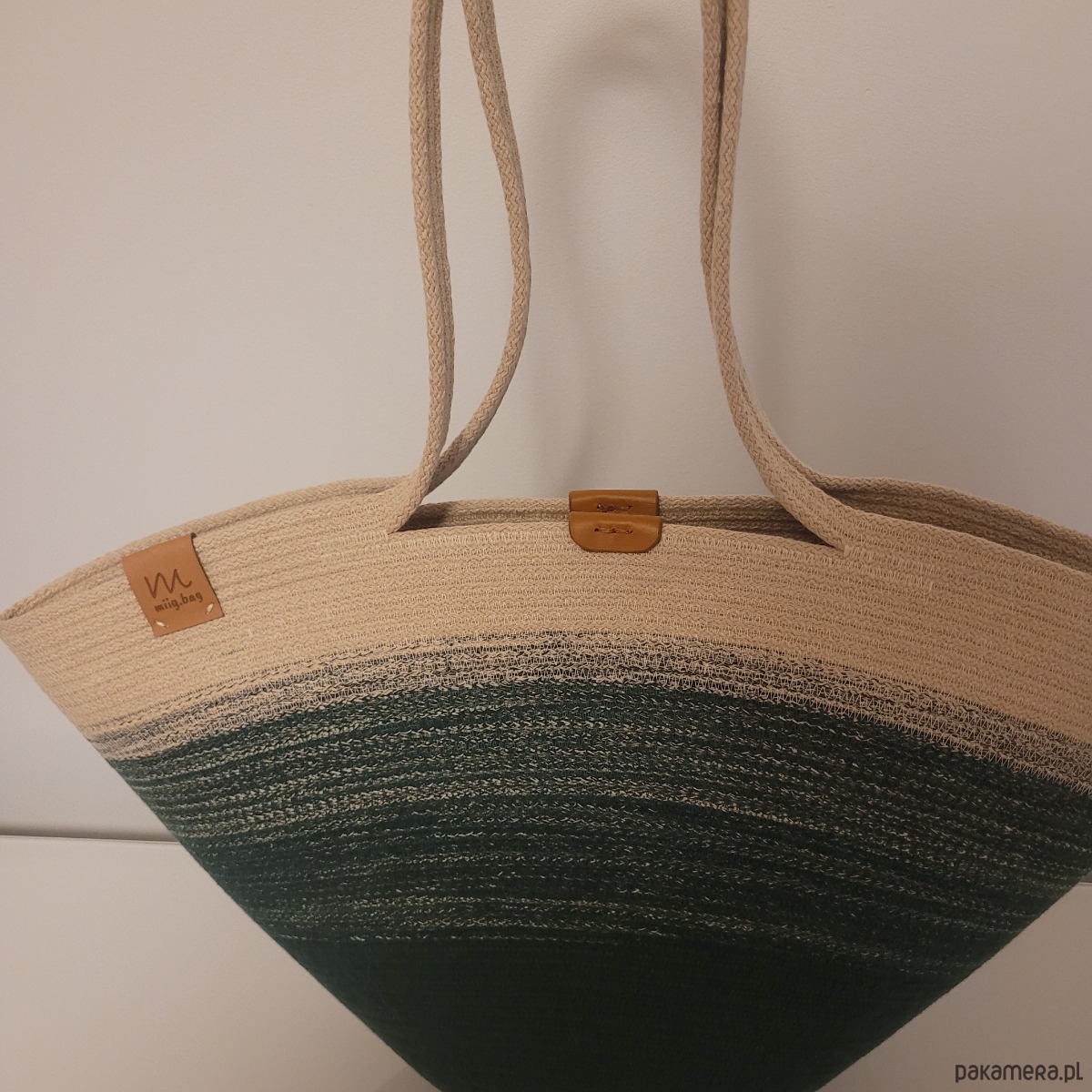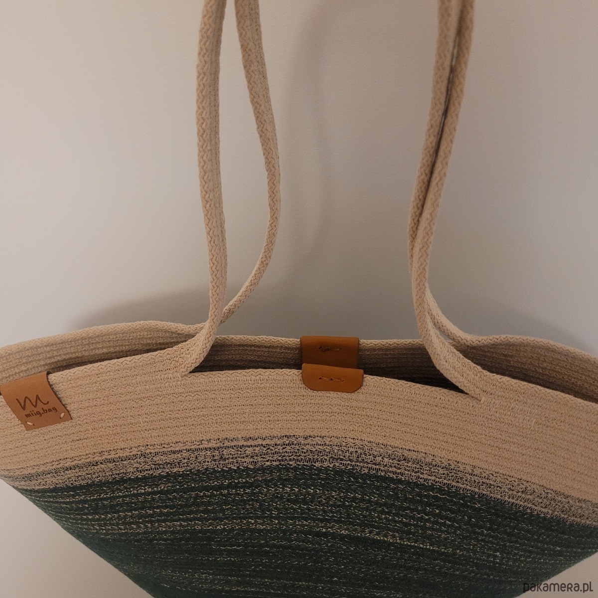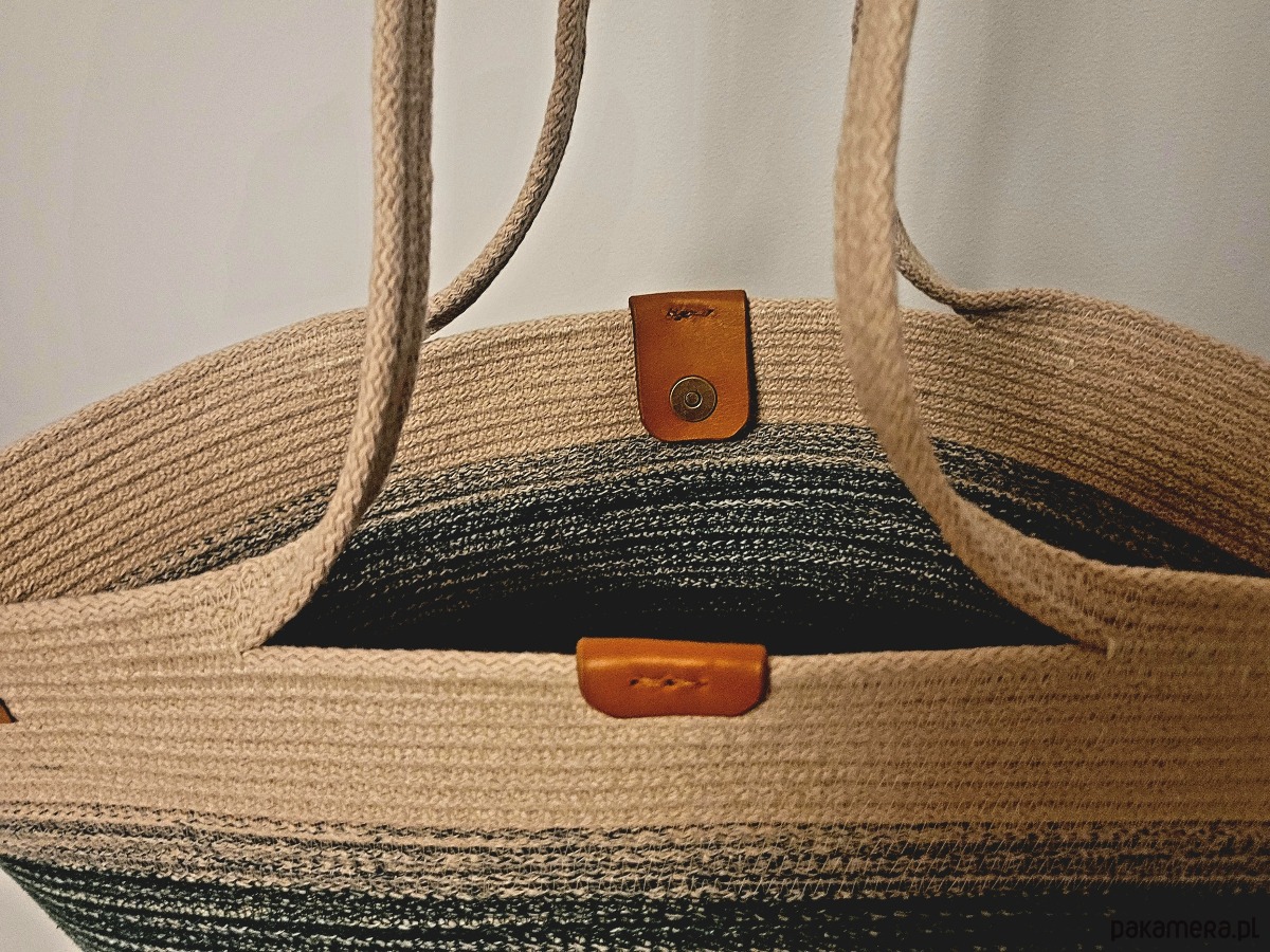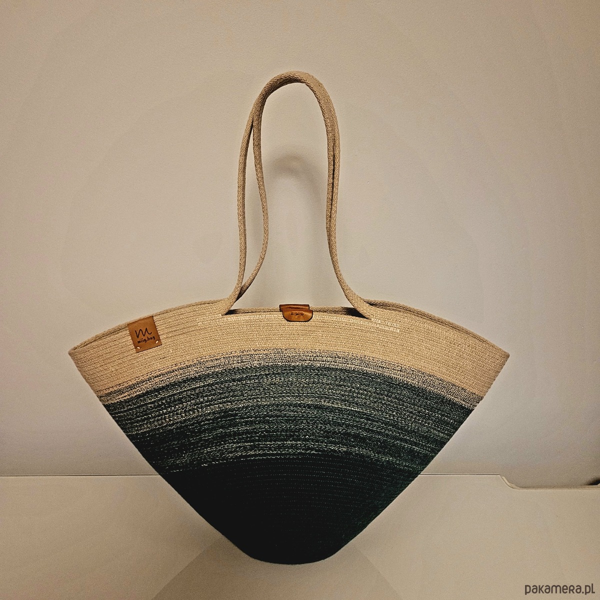 Torebka koszyk, szyta ręcznie ze sztywnego sznurka bawełnianego o grubości 5mm. Idealny wybór do letniej stylizacji, będzie funkcjonalnym i pięknym dodatkiem. Kosz posiada wygodne rączki, jest lekki I pojemny. Ma wszyte zapiecie magnetyczne.