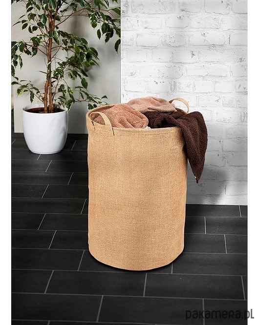 Kosz na pranie o pojemności 62 litrów jest bardzo przydatny w łazience. Wykonany z juty. Wyposażony w uchwyty boczne umożliwiające łatwe przenoszenie.