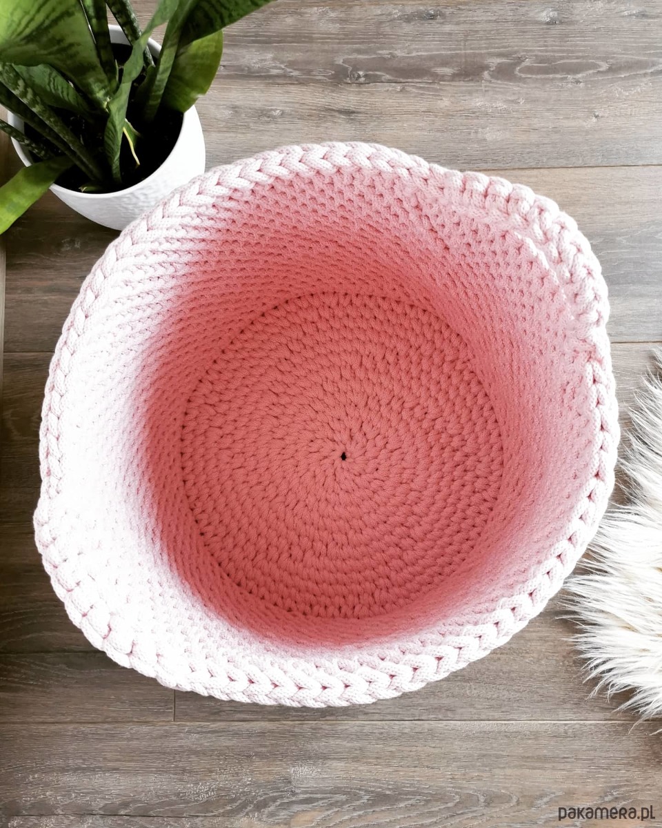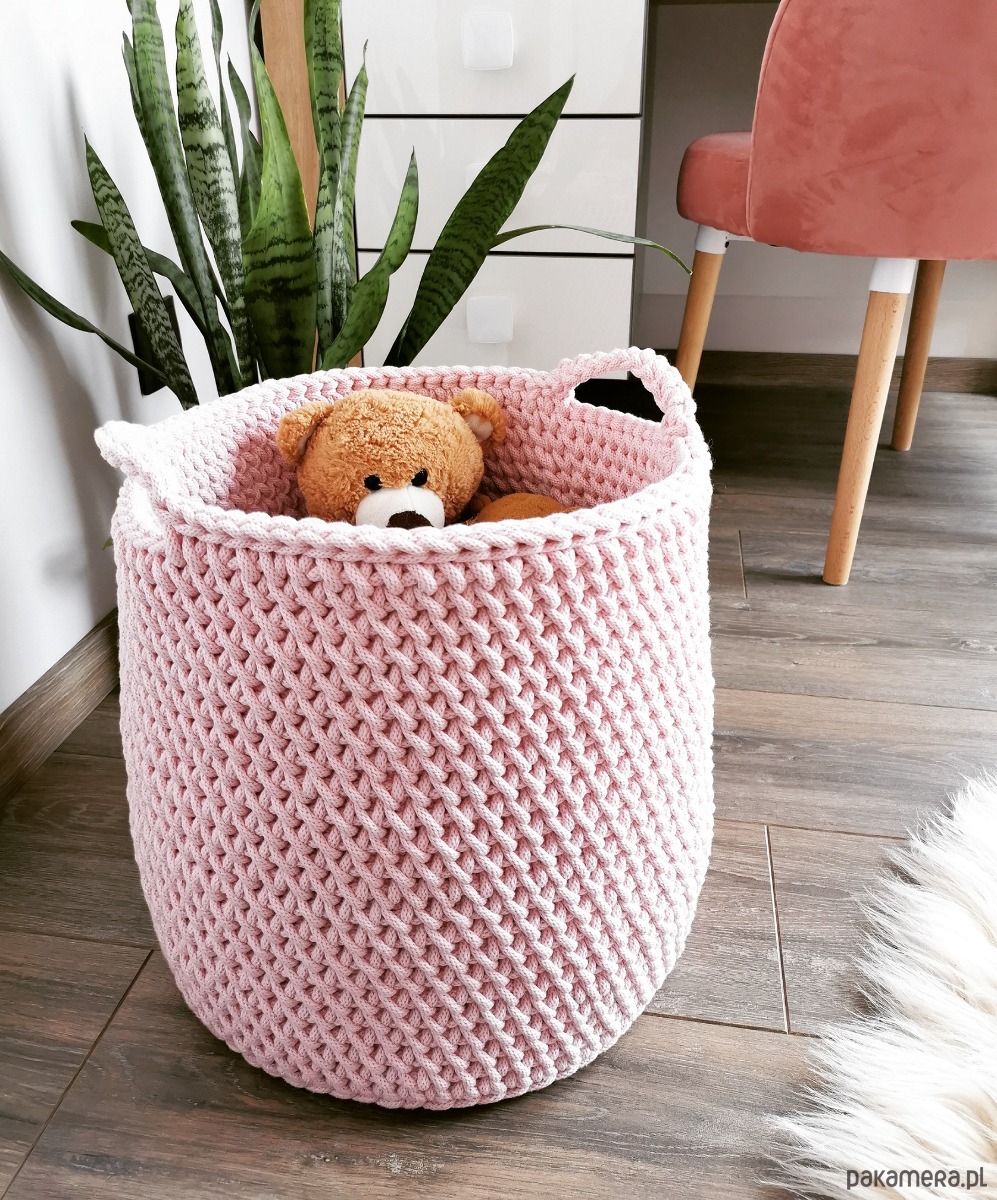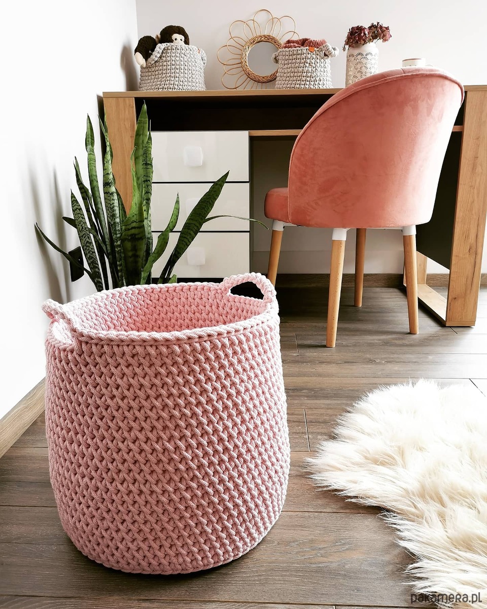 Pojemny kosz wykonany ze sznurka bawełnianego pięknym wzorem plecionym - nie ugina się ani nie odkształca.