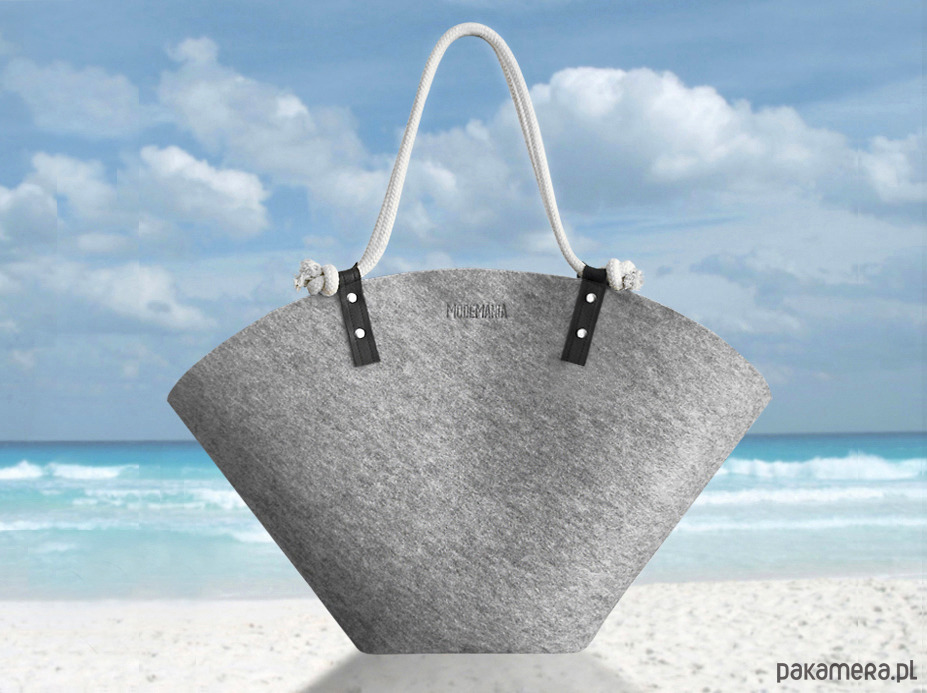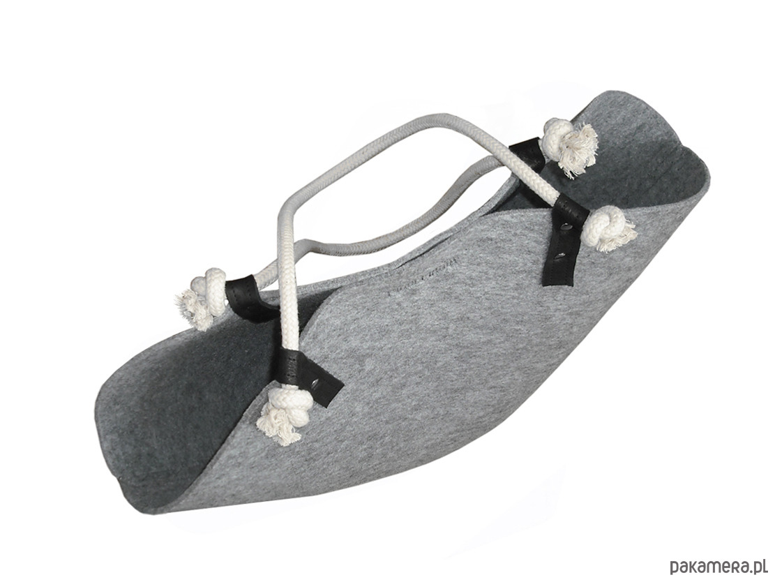 Duży kosz na ramię z szarego filcu impregnowanego (polskiego).