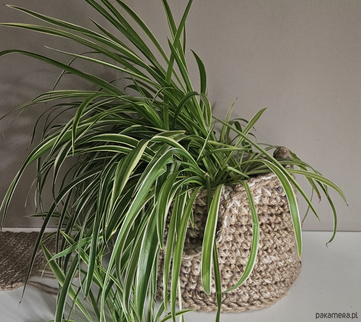 Konopie nadają mu trwałość i stabilność, a wełniana przędza dodaje lekkości oraz delikatnego, przytulnego charakteru. To połączenie sprawia, że kosz jest nie tylko praktyczny, ale też wyjątkowo dekoracyjny.