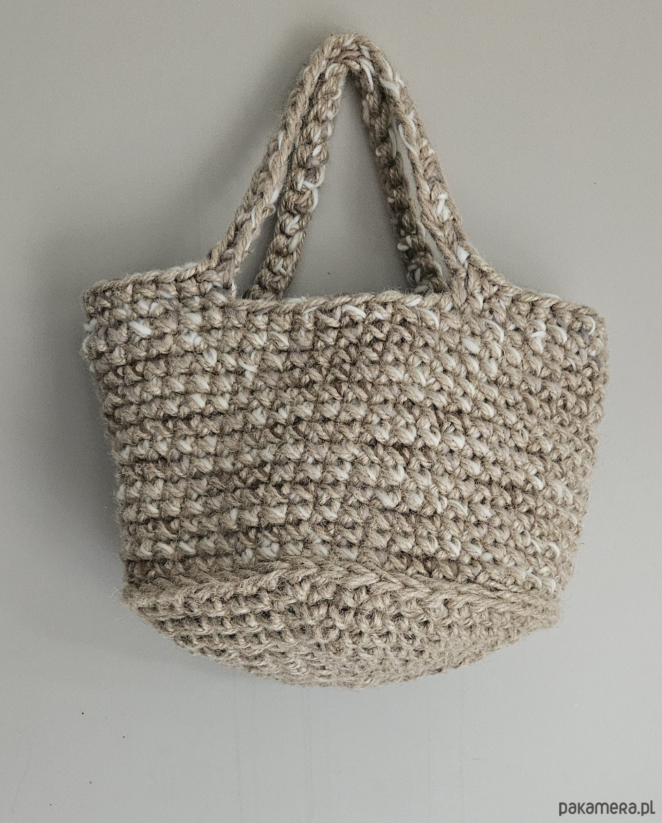 Ten kosz to połączenie surowej siły konopi i miękkości wełny. Wykonany ręcznie na szydełku ze sznurka konopnego z dodatkiem wełnianej przędzy, zachwyca wyrazistą fakturą, naturalnym kolorem i subtelną, niepowtarzalną strukturą.