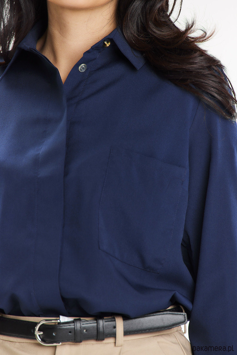 Z przodu koszuli ozdobna kieszonka.