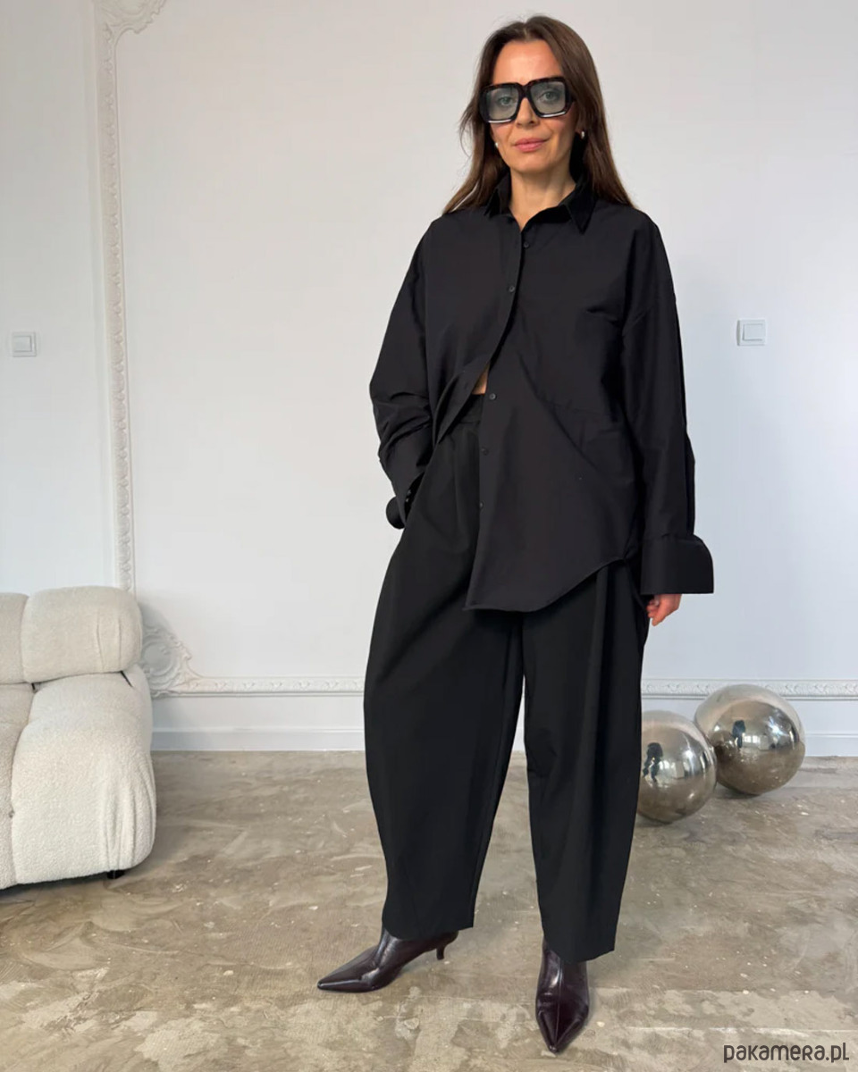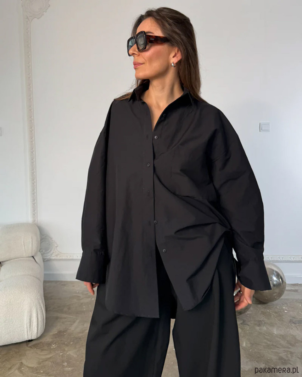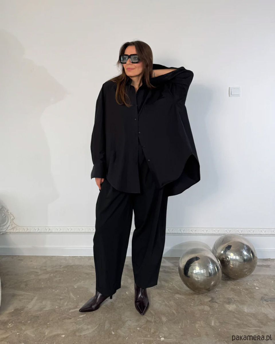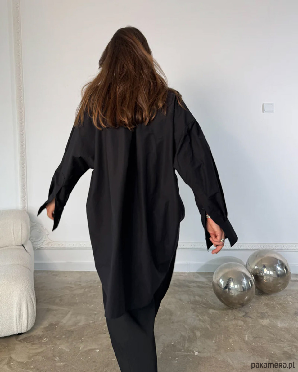 Koszula Calm w kolorze głębokiej czerni łączy spokojną elegancję z miejskim luzem. Uszyta w Polsce ze 100% bawełny premium, jest miękka, przewiewna i trwała – wygodna o każdej porze roku. Oversize’owy krój z obniżoną linią ramion i wydłużonym tyłem daje swobodę ruchu i nowoczesną, nonszalancką linię. To ponadczasowa baza kapsułowej garderoby – łatwo łączy się z bielą, szarościami, beżami i denimem, od t-shirtów i jeansów po eleganckie spodnie z kantem.