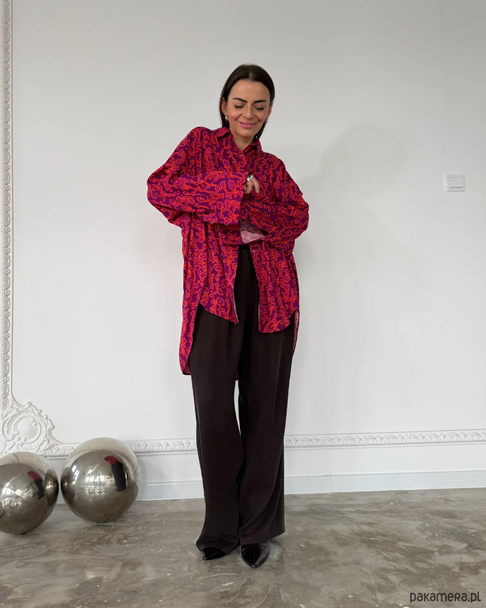 Koszula Calm oversize fuksja fiolet z printem to propozycja dla kobiet, które chcą wyróżnić się wyrazistym stylem i jednocześnie cenią świadomą modę. Powstaje w Polsce, w krótkim łańcuchu dostaw i w limitowanej liczbie egzemplarzy, dzięki czemu staje się unikatowym elementem garderoby.