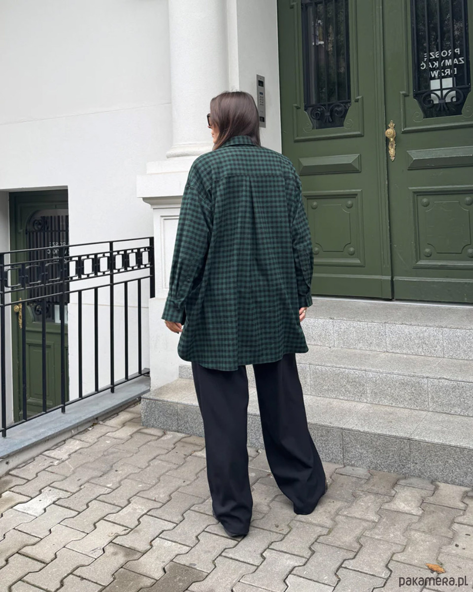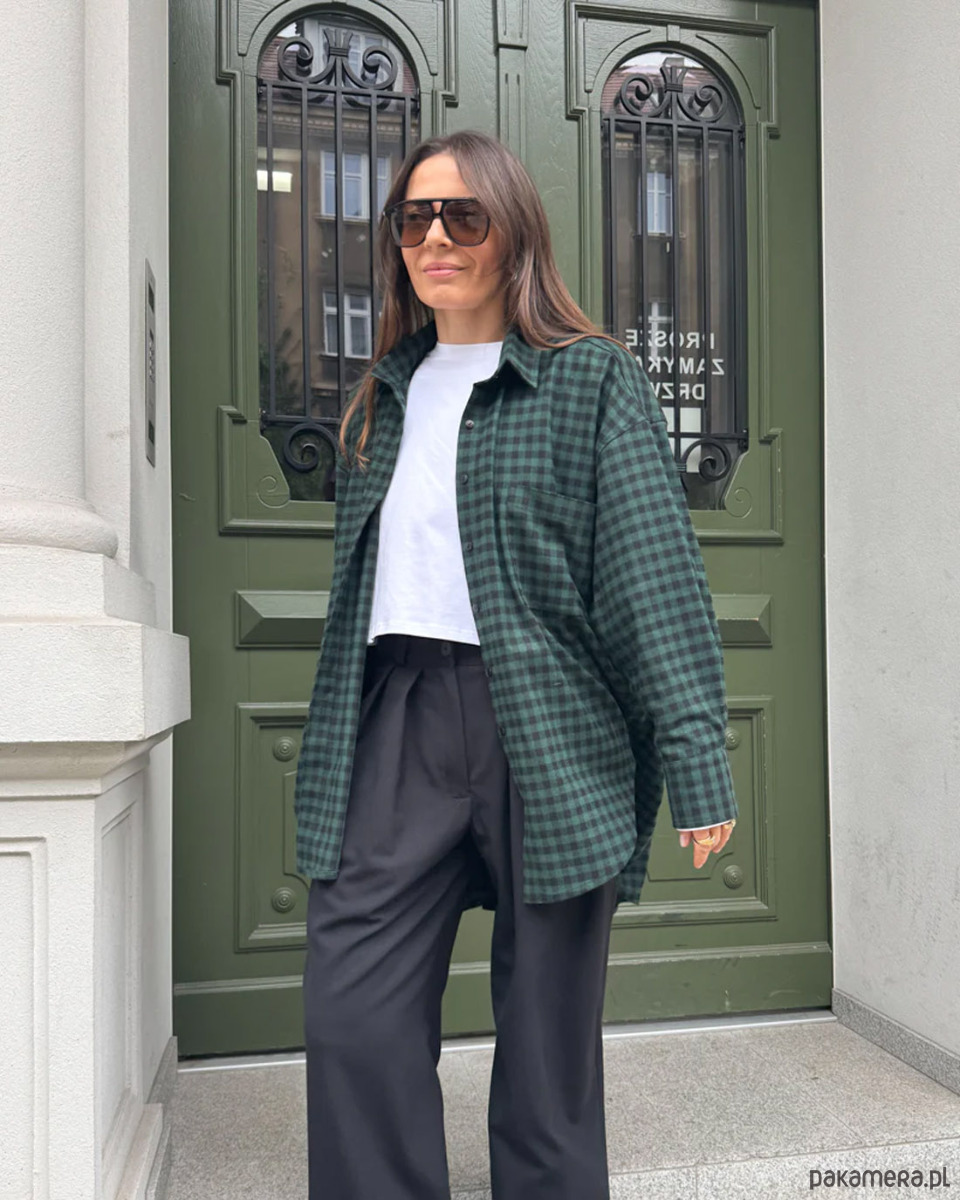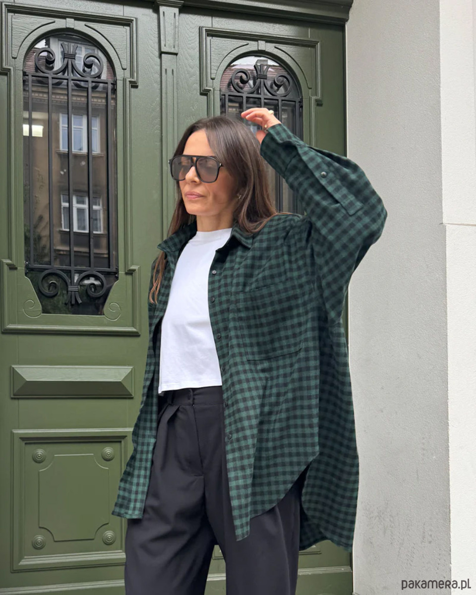 Koszula Calm w odcieniu głębokiej zieleni z czarną kratą to kwintesencja spokojnej elegancji i miejskiego luzu. Ten kolor symbolizuje równowagę, naturę i wewnętrzną harmonię – idealny wybór dla kobiet, które cenią minimalizm, ale chcą zachować wyrazisty charakter stylizacji.
