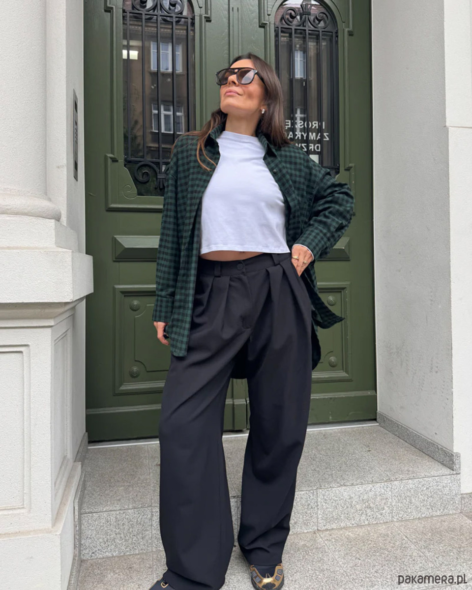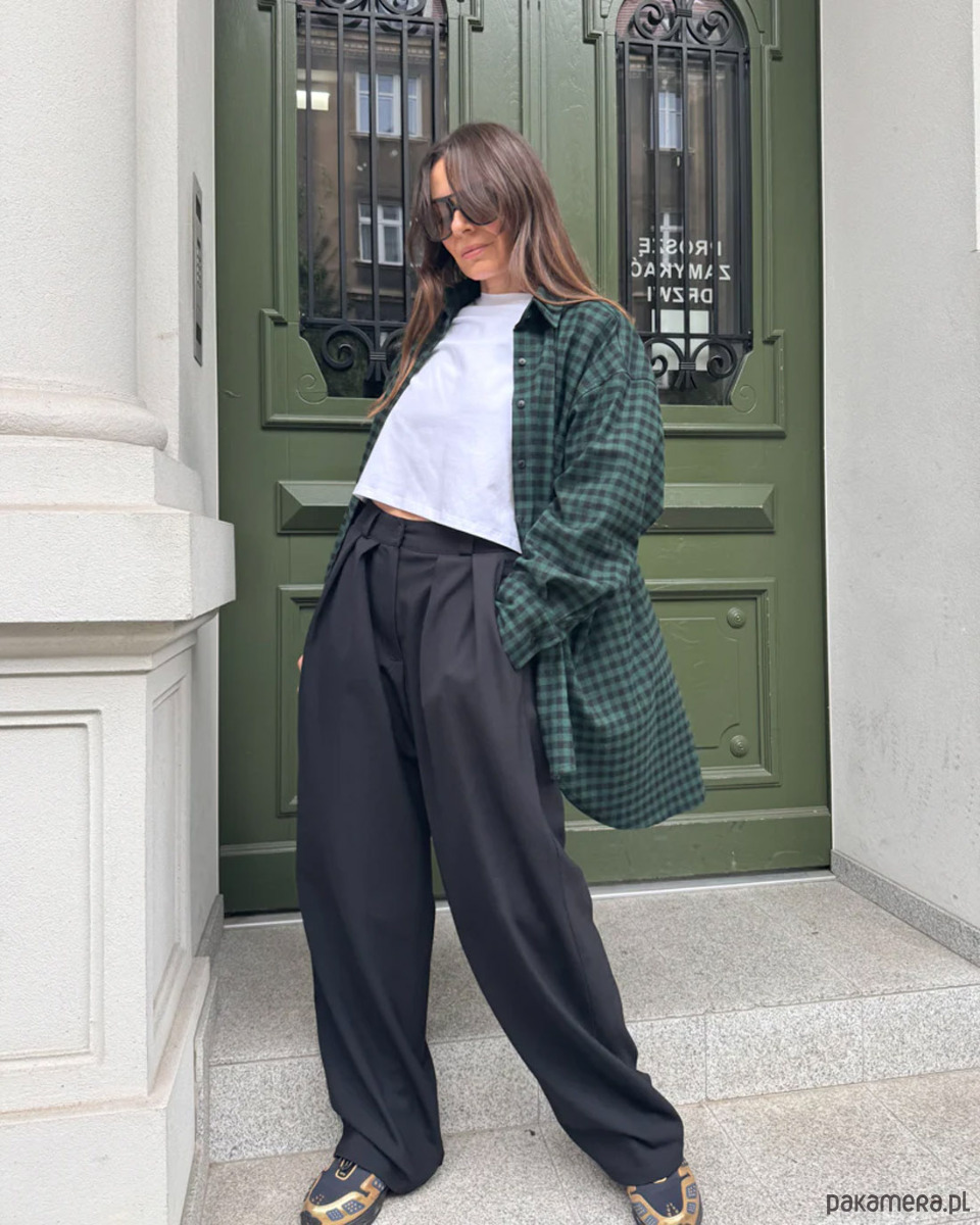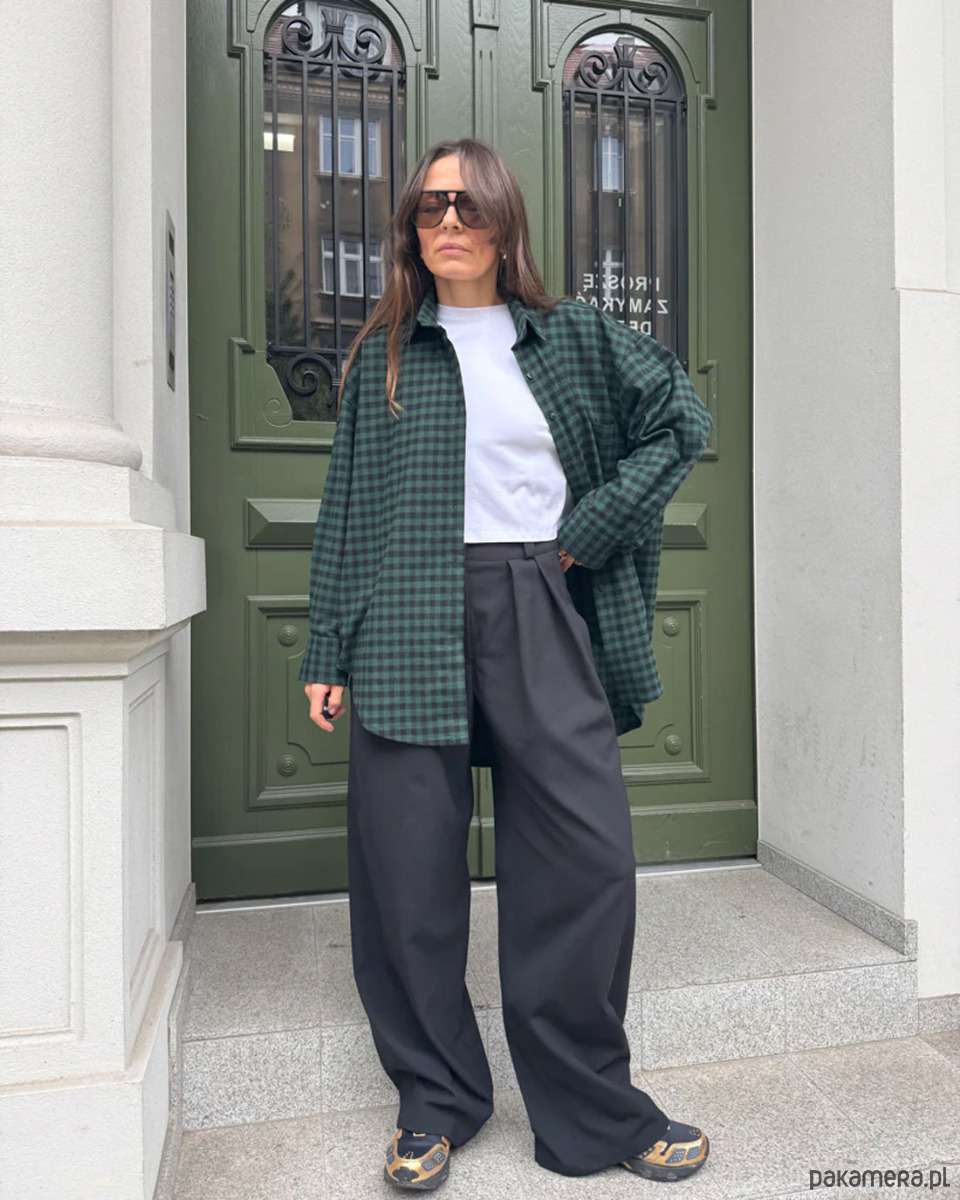 Koszula Calm w odcieniu głębokiej zieleni z czarną kratą to kwintesencja spokojnej elegancji i miejskiego luzu. Ten kolor symbolizuje równowagę, naturę i wewnętrzną harmonię – idealny wybór dla kobiet, które cenią minimalizm, ale chcą zachować wyrazisty charakter stylizacji.