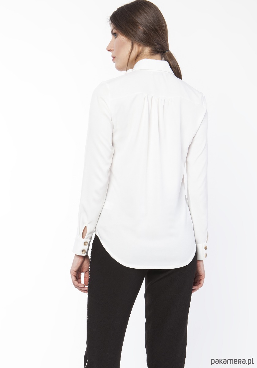 Koszula damska zapinana na guziki, z długim rękawem zakończonym mankietem. Koszula posiada z przodu dwie kieszenie, dłuższa z tyłu.