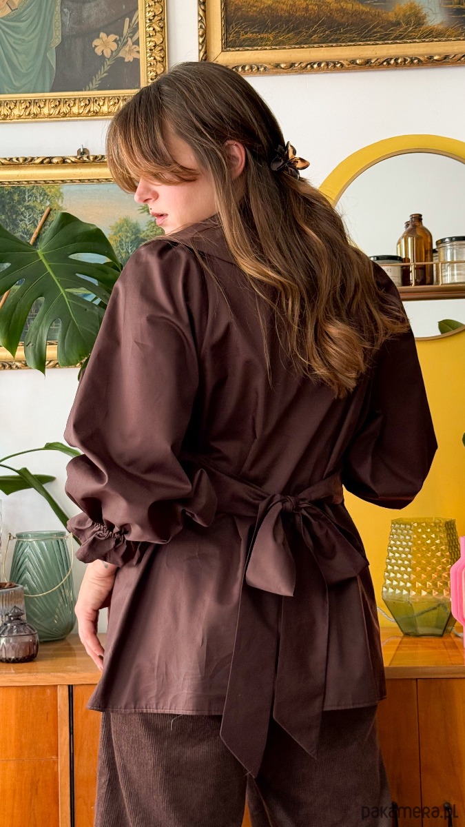 Koszula Gorzka Czekolada została wykonana z gładkiej, satynowanej tkaniny bawełnianej.
