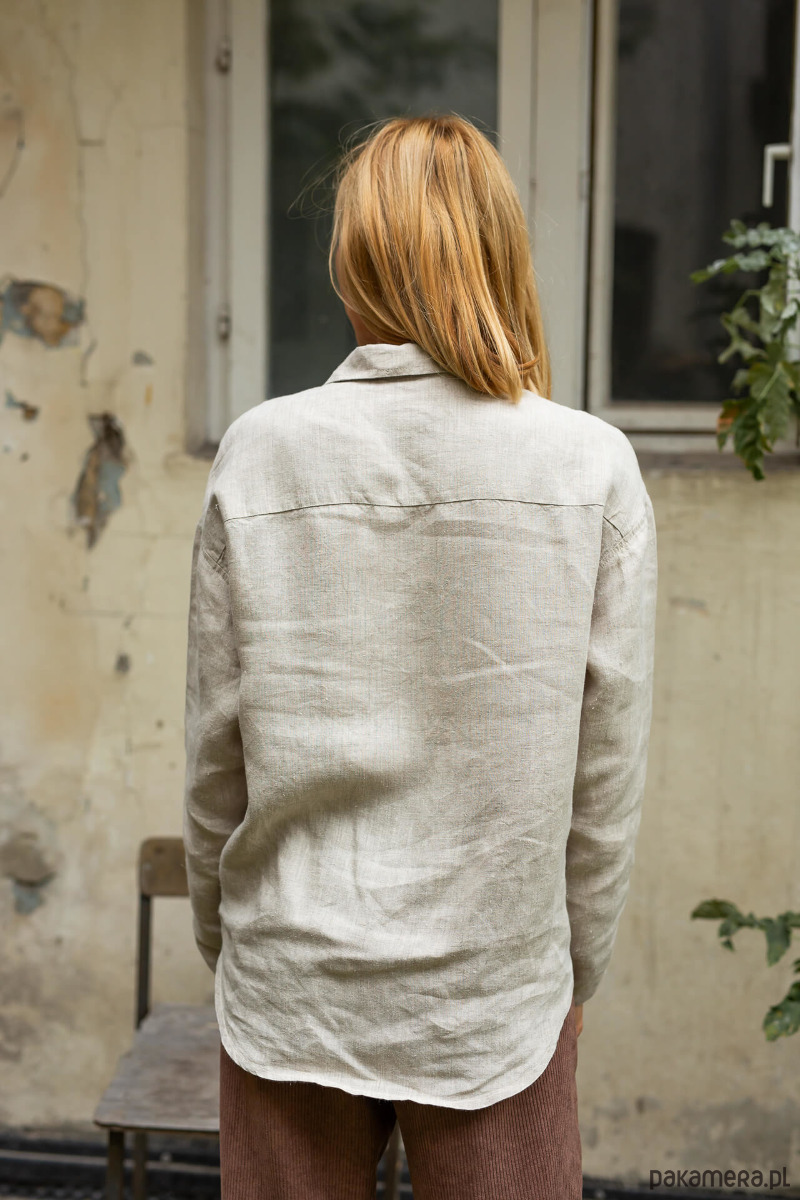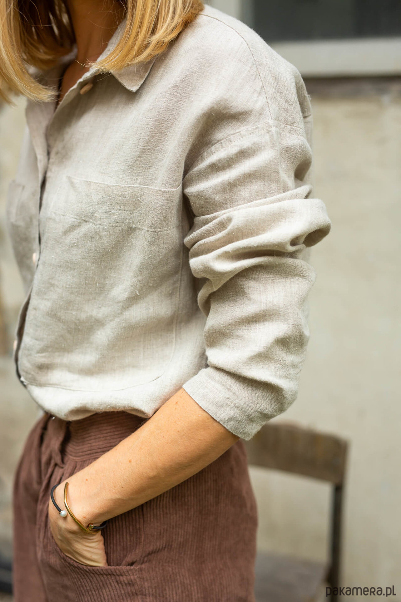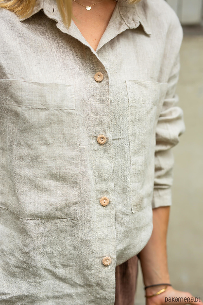 Koszula konopna Willow to uniwersalność w klasycznym wydaniu. Wyposażona w kołnierzyk, zapinana jest na piękne drewniane guziki, które nadają jej wyjątkowy charakter. Proste rękawy można wygodnie podwinąć, dostosowując koszulę do swojego gustu i potrzeb. Praktyczność podkreślają dwie duże kieszenie na piersiach, które pomieszczą wiele drobiazgów. Dzięki naturalnemu kolorowi pasuje zarówno do jeansów, jak i bardziej eleganckich spodni. To idealny wybór dla tych, którzy cenią wygodę i ekologiczne materiały w swojej garderobie.