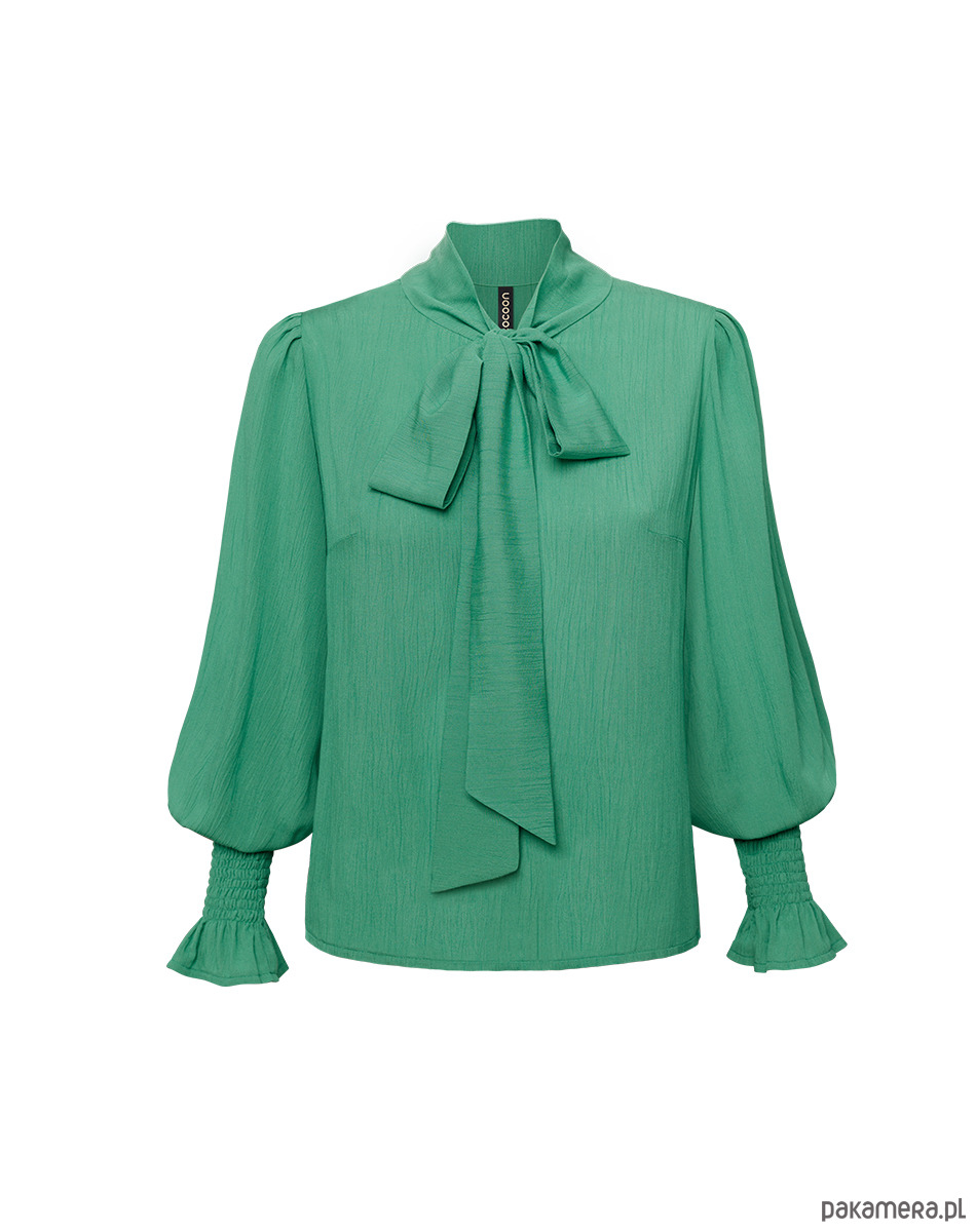 Elegancka koszula z wiązaniem przy szyi z bufiastymi rękawami. uszyta z włoskiej tkaniny wiskozowej kreszowanej bardzo przewiewnej przewiewna idealnie sprawdzi się na lato w dotyku przypomina jedwab . Na zdjęciu Ula (167cm wzrostu) ma na sobie rozmiar S. kolor zieleń