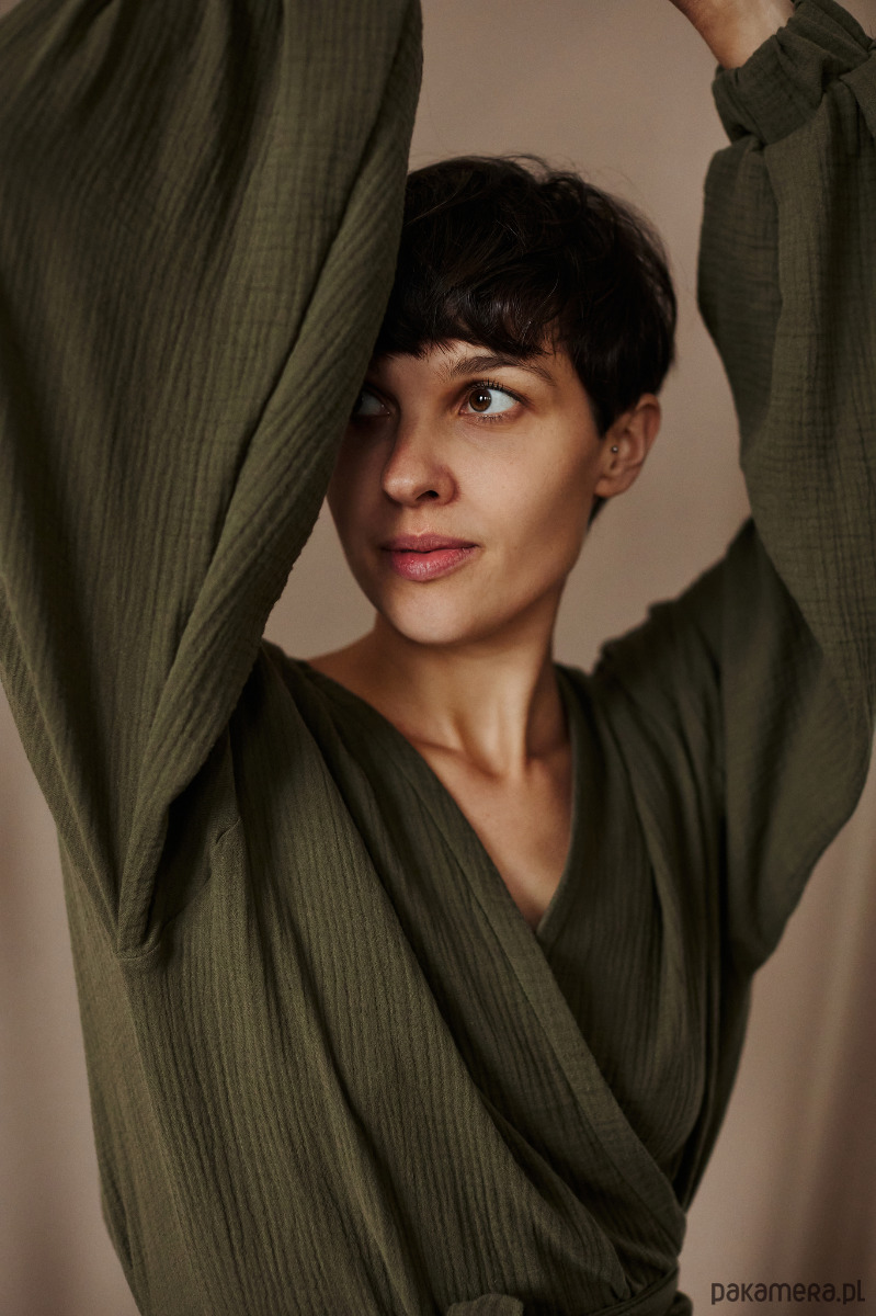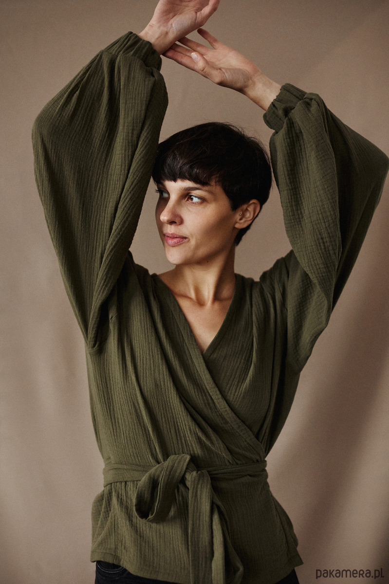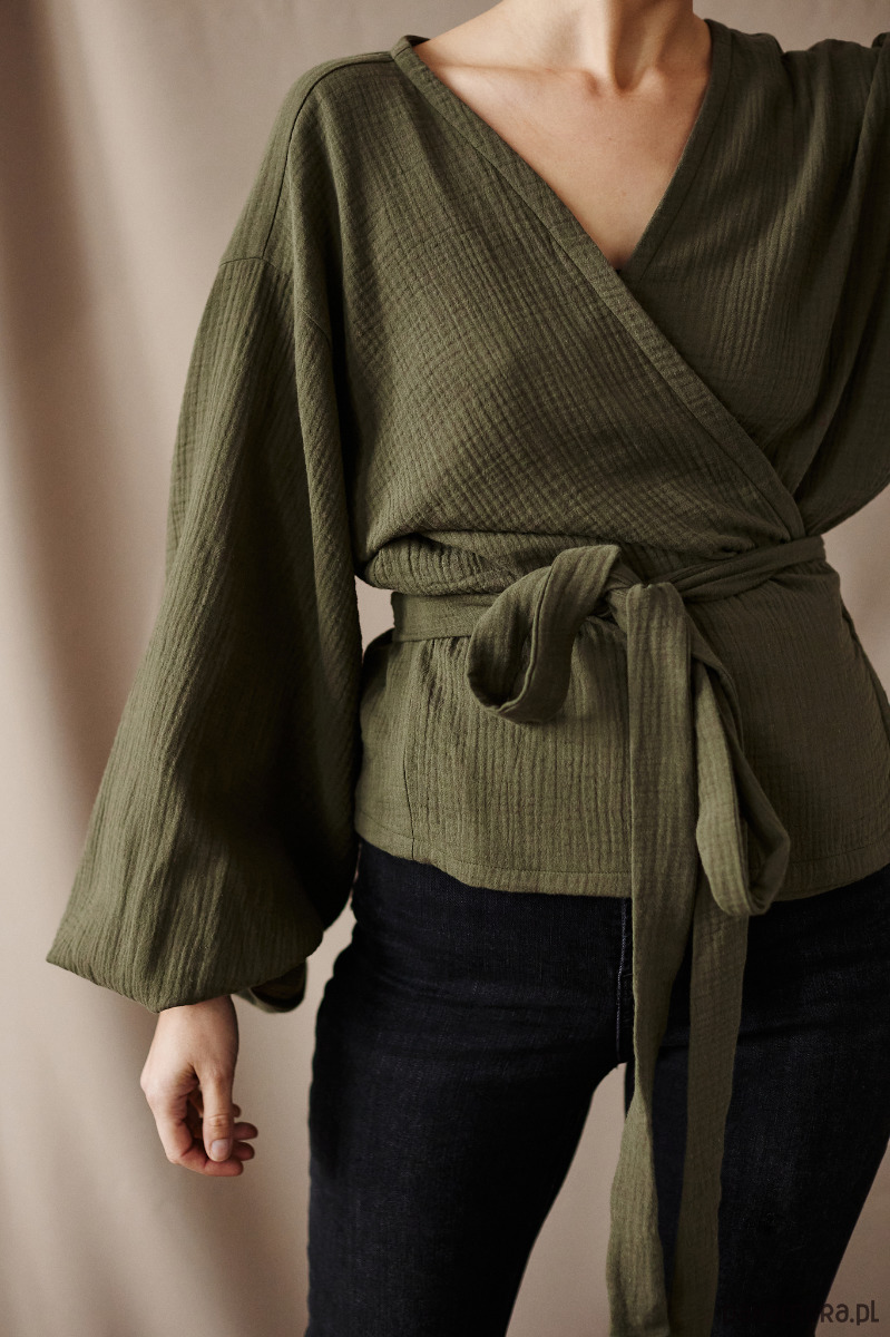Koszula LARYSA została uszyta z bawełnianego muślinu w kolorze khaki.