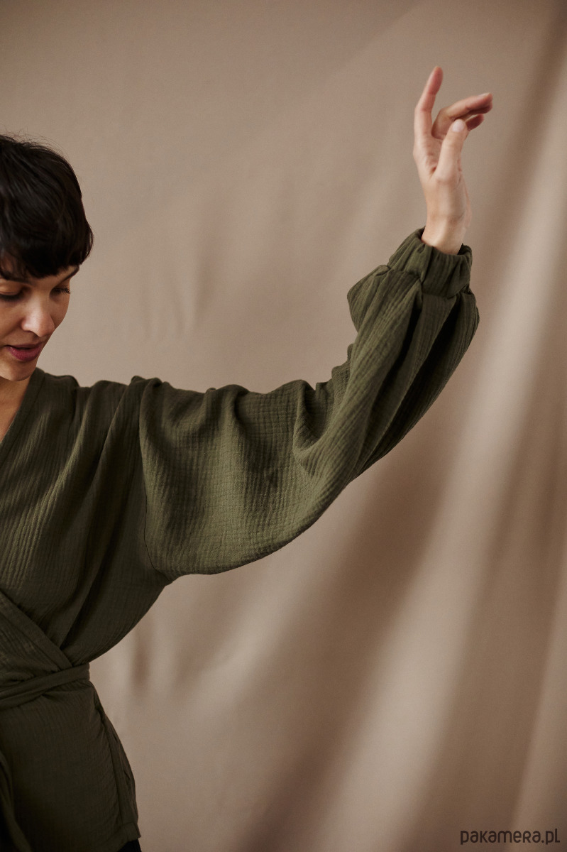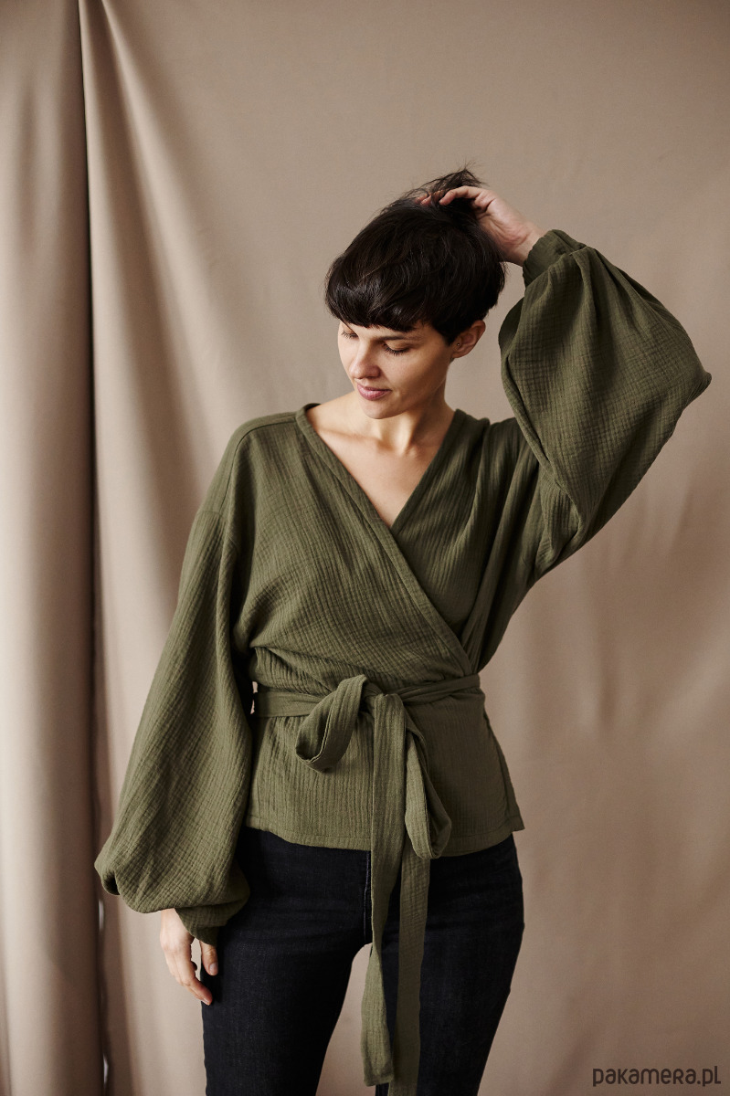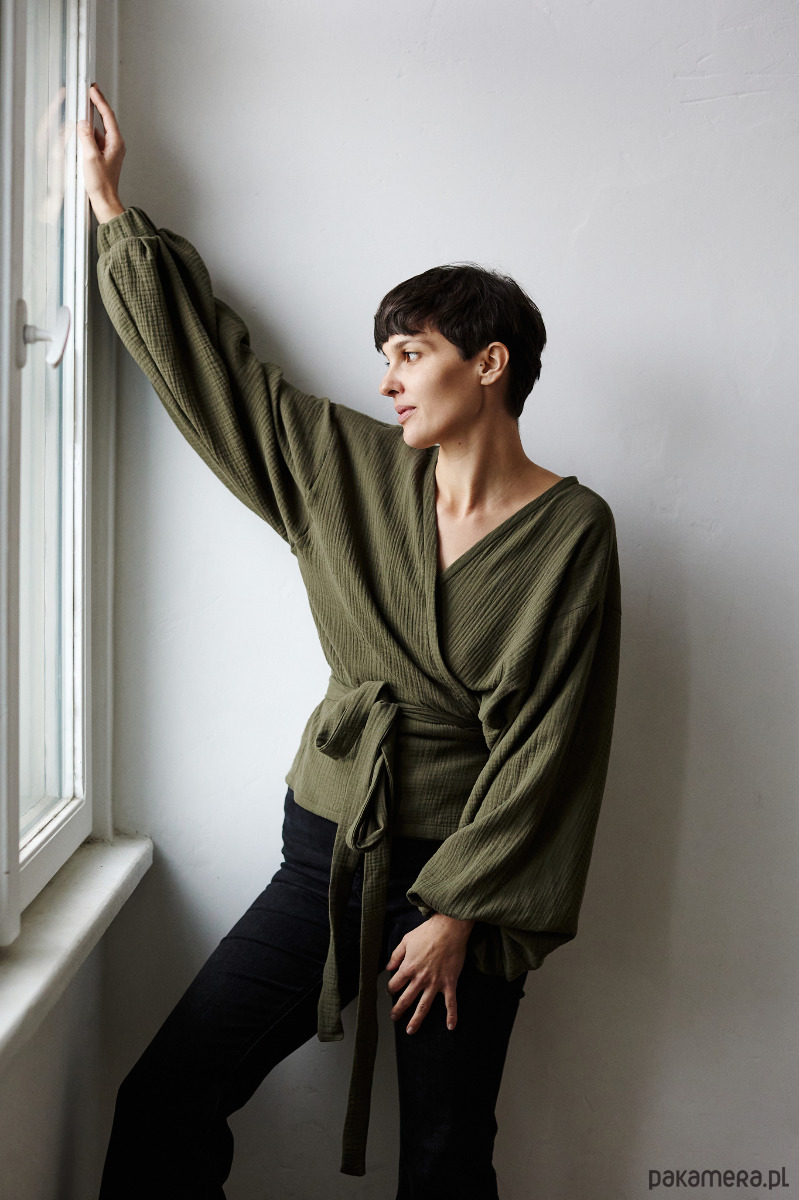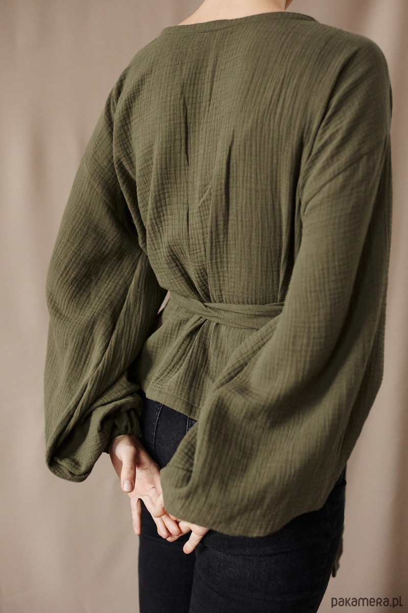 Koszula LARYSA została uszyta z bawełnianego muślinu w kolorze khaki.