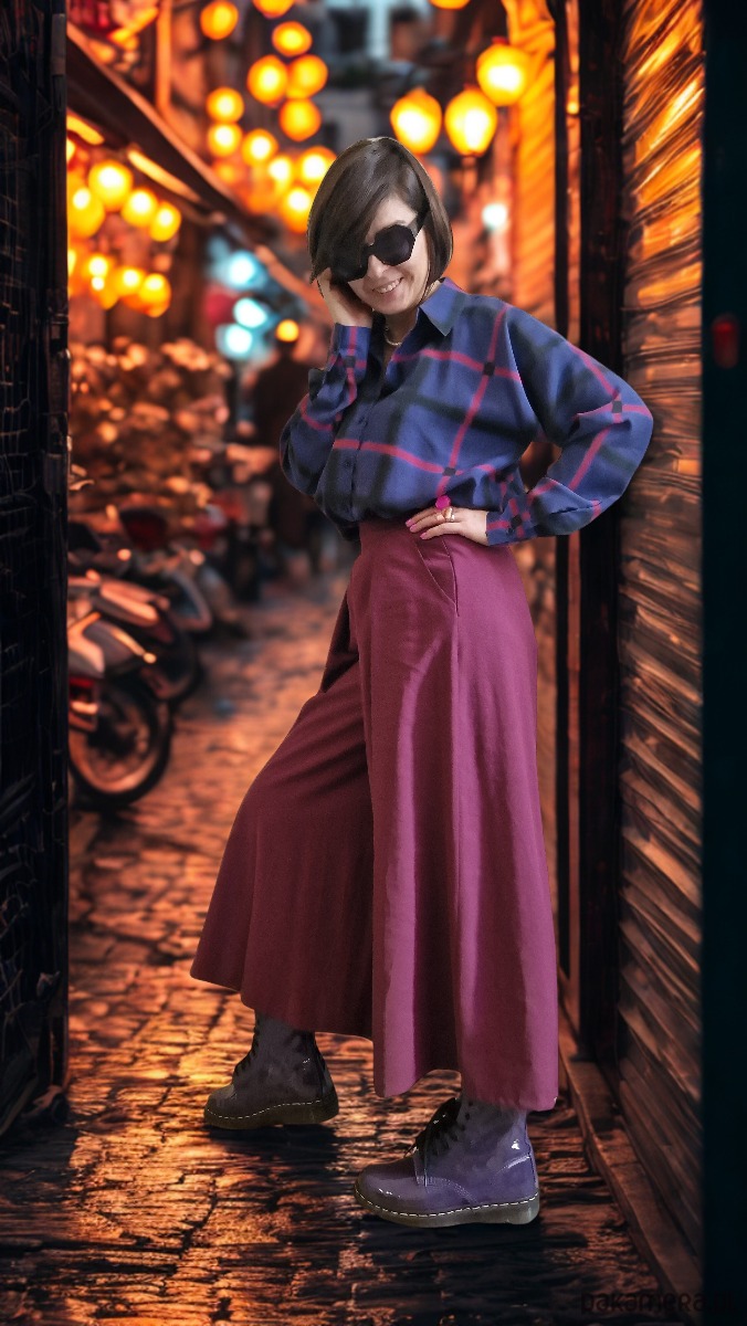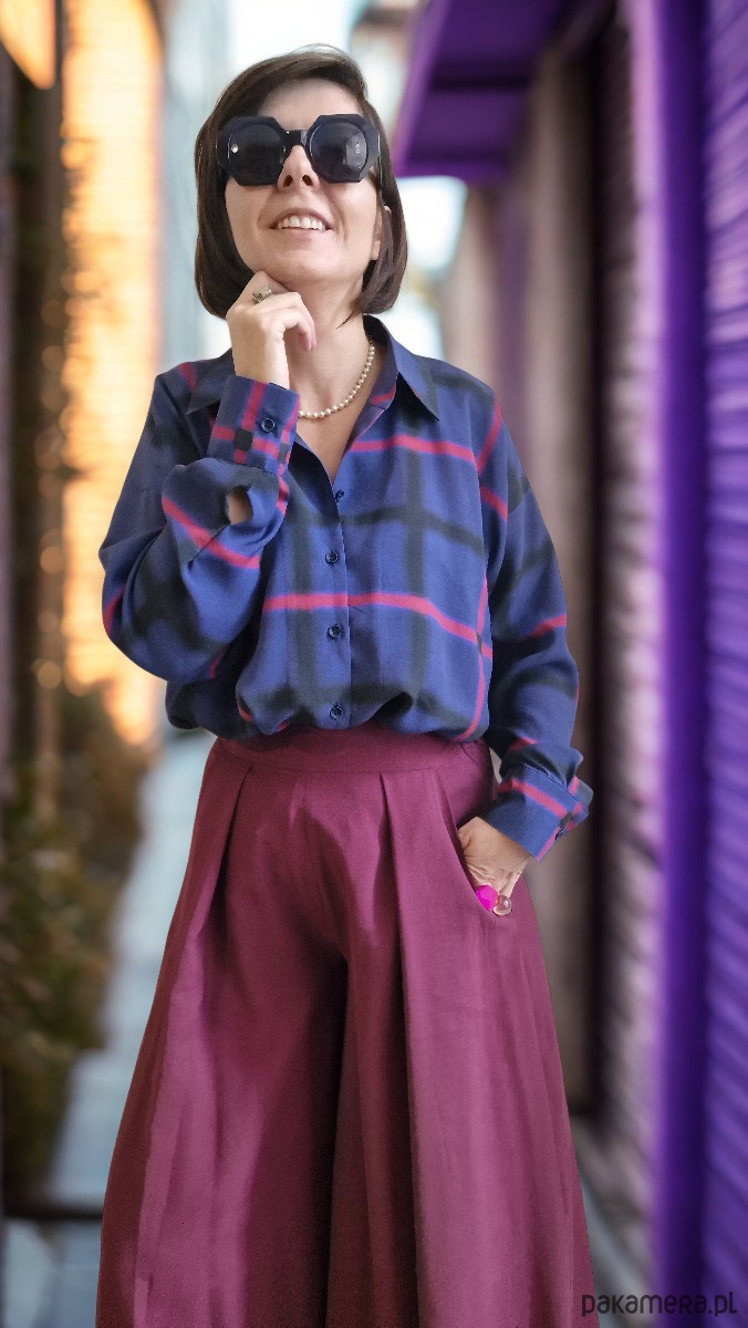 Wzór: Klasyczna krata w odcieniach granatu, fuksji i czerni, dodająca charakteru każdej stylizacji.