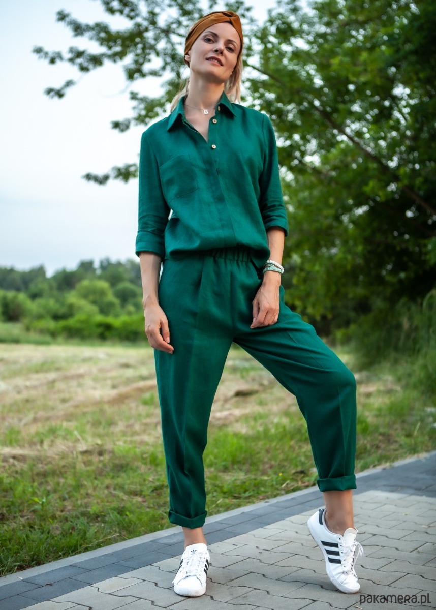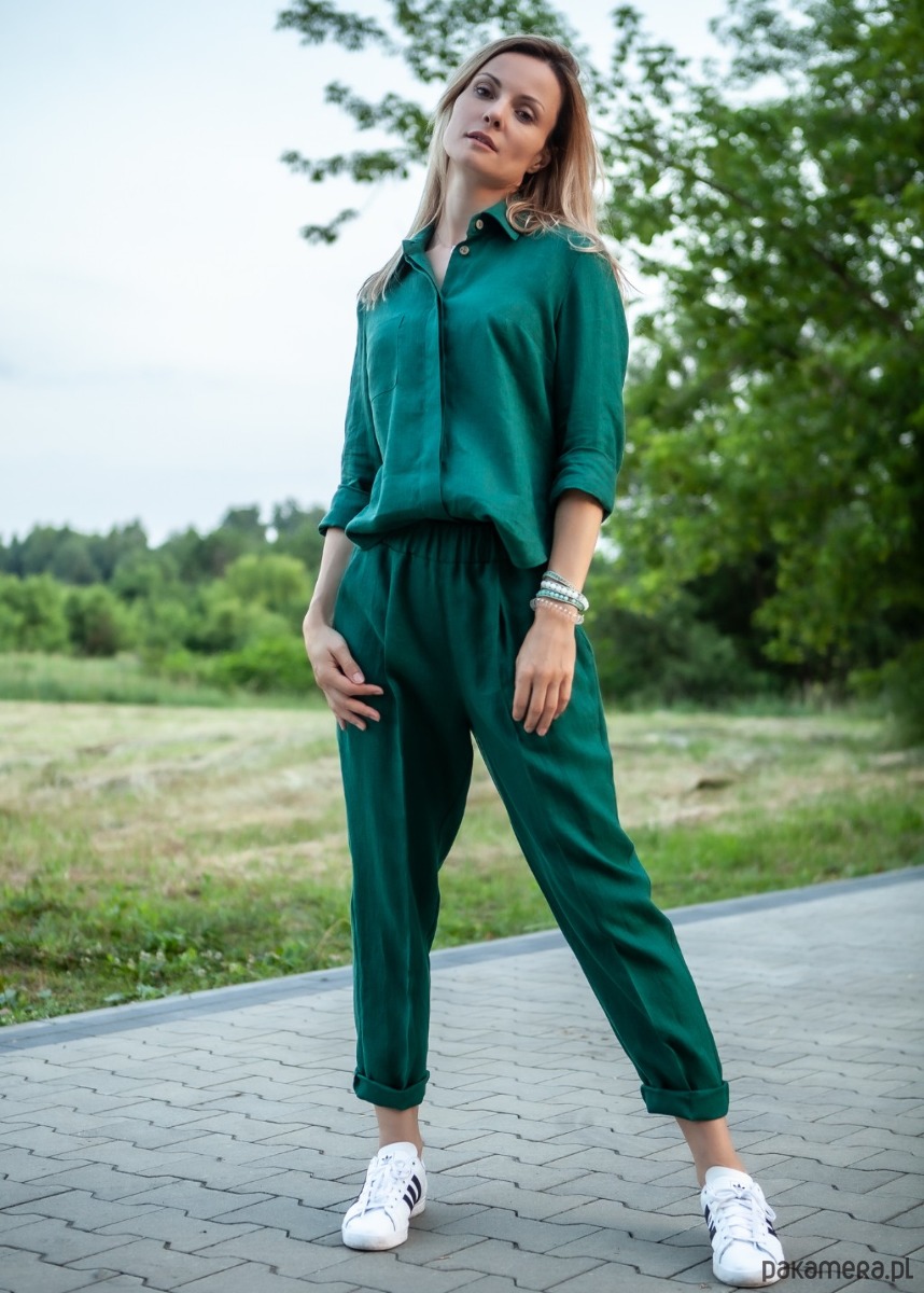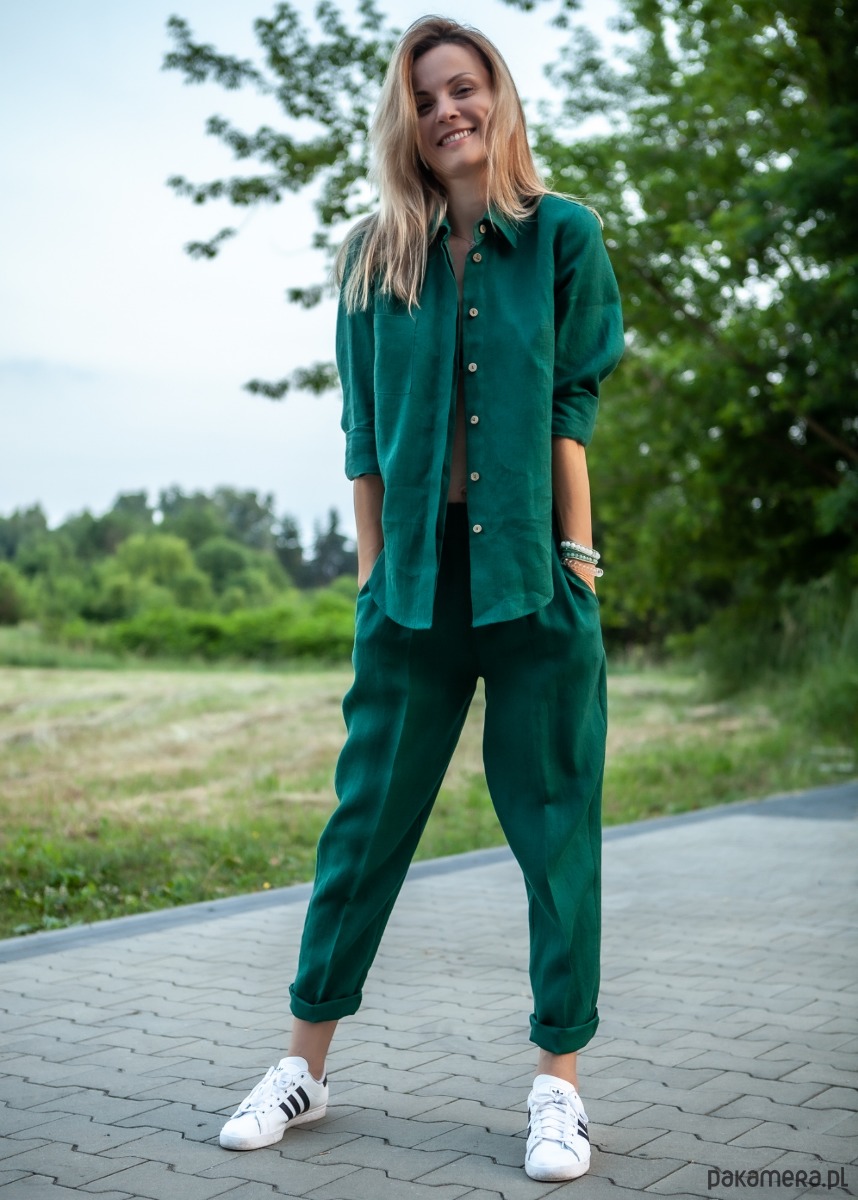 Koszula wykonana z tkaniny lnianej 100%. Guziki kryte wykonane z łupiny kokosa :)