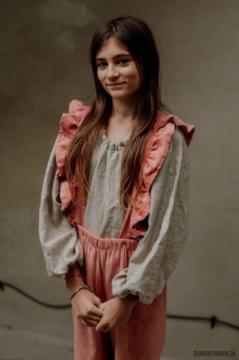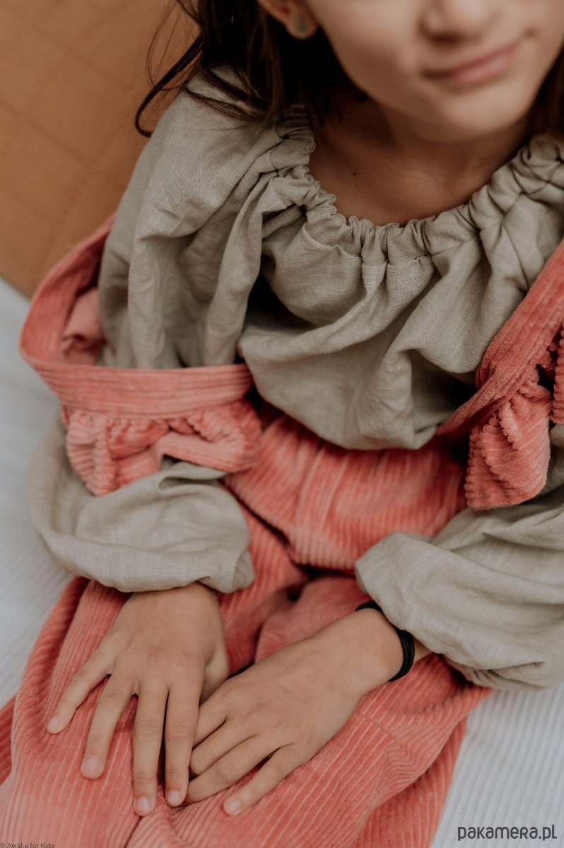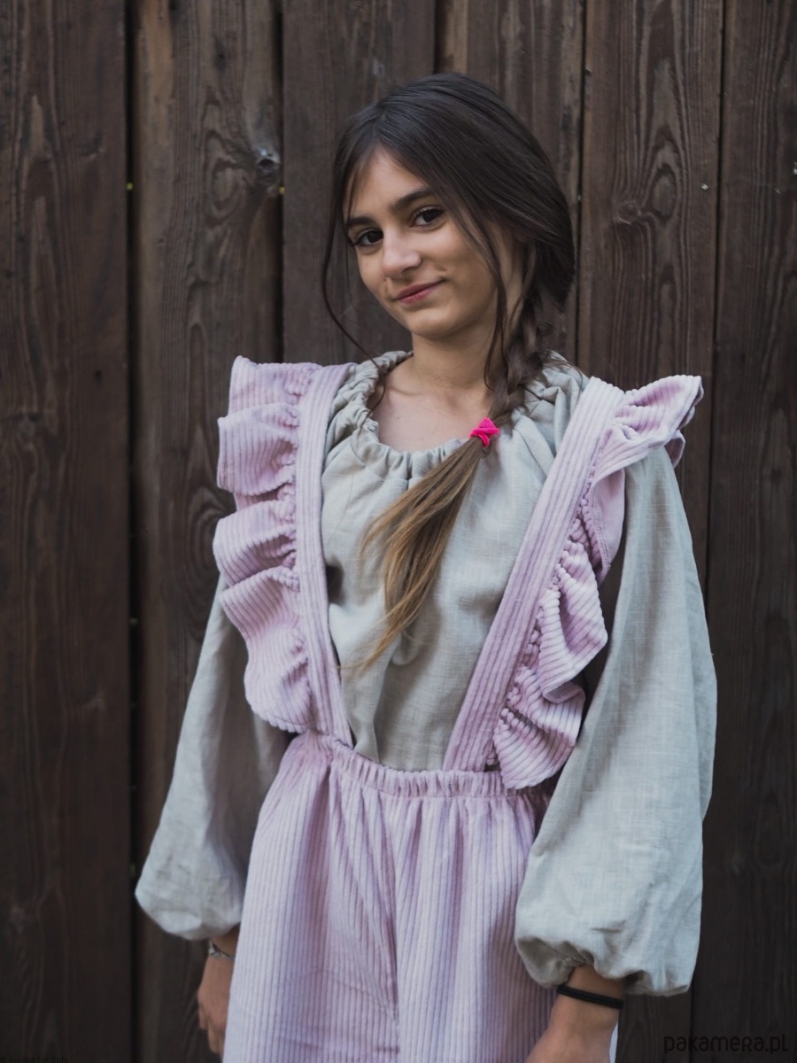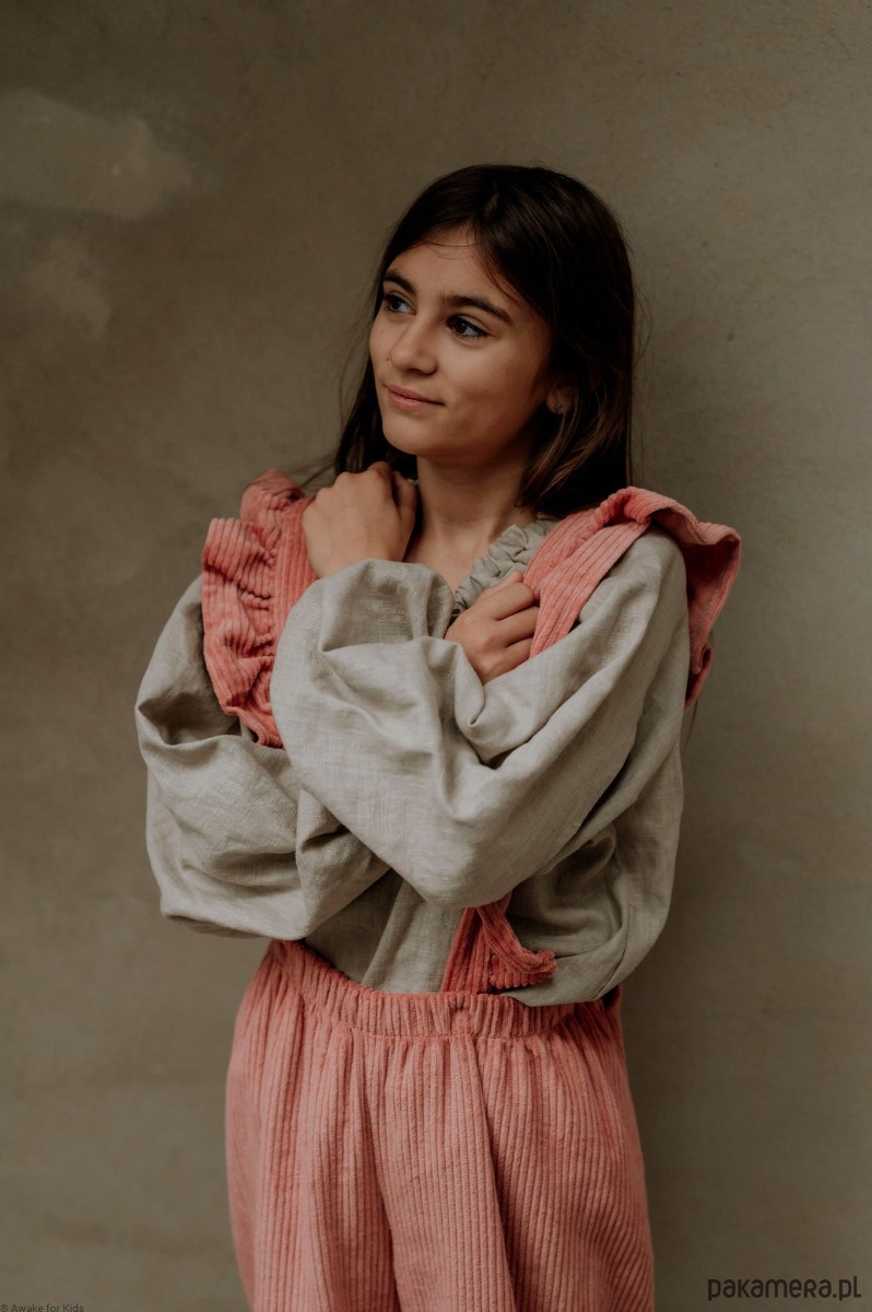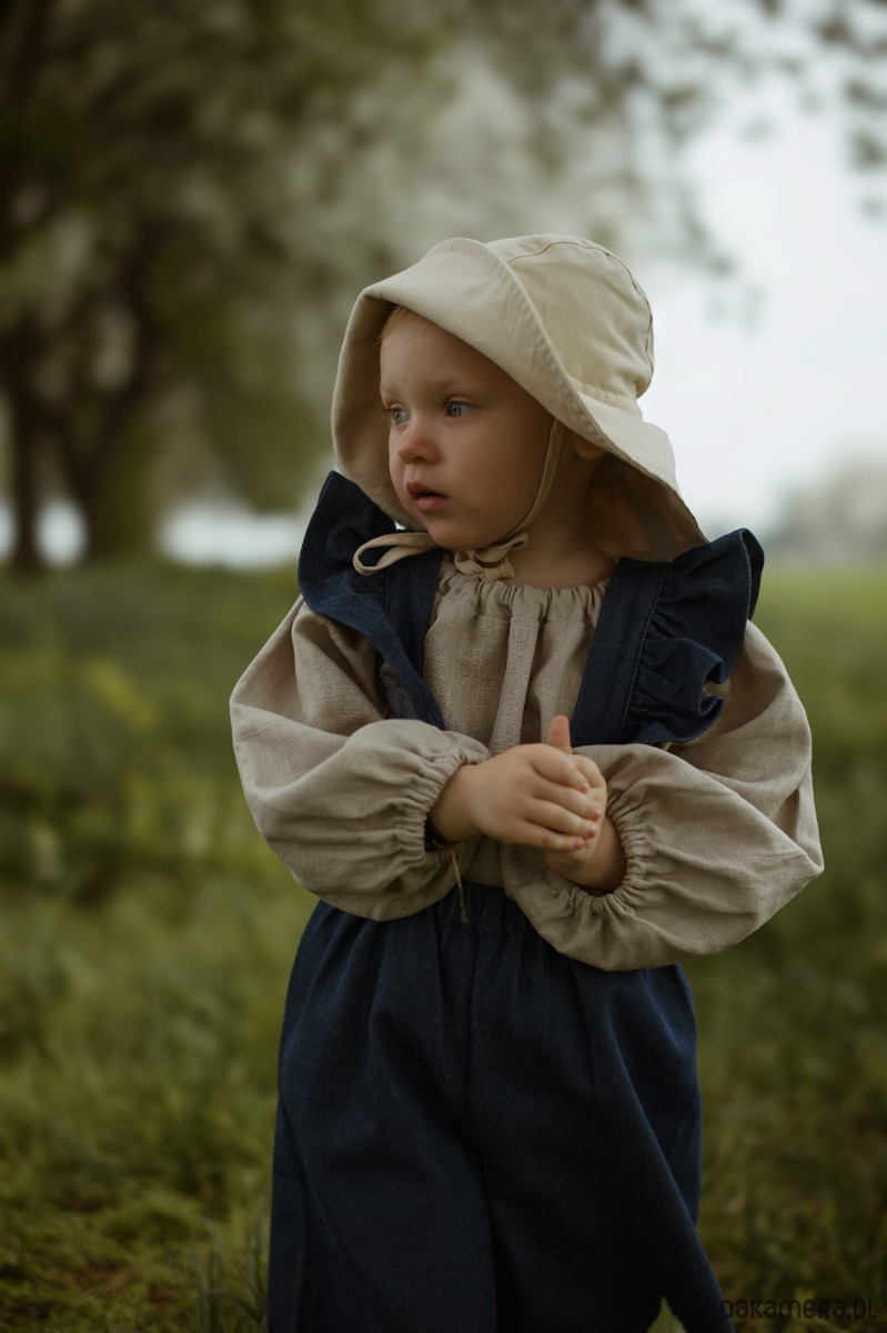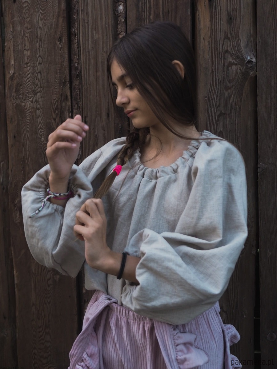 Koszula dla dziewczynek uszyta z lnu pranego w pięknym odcieniu light sand.