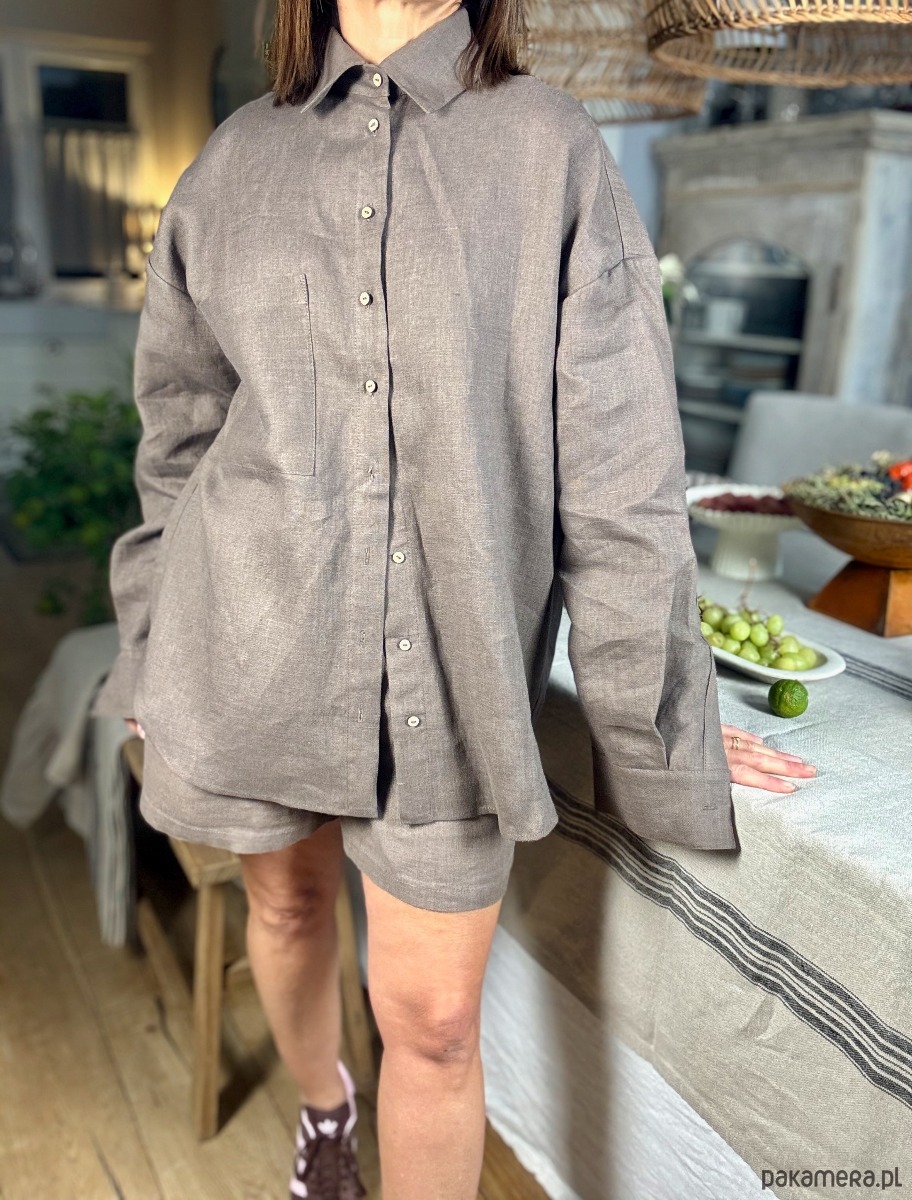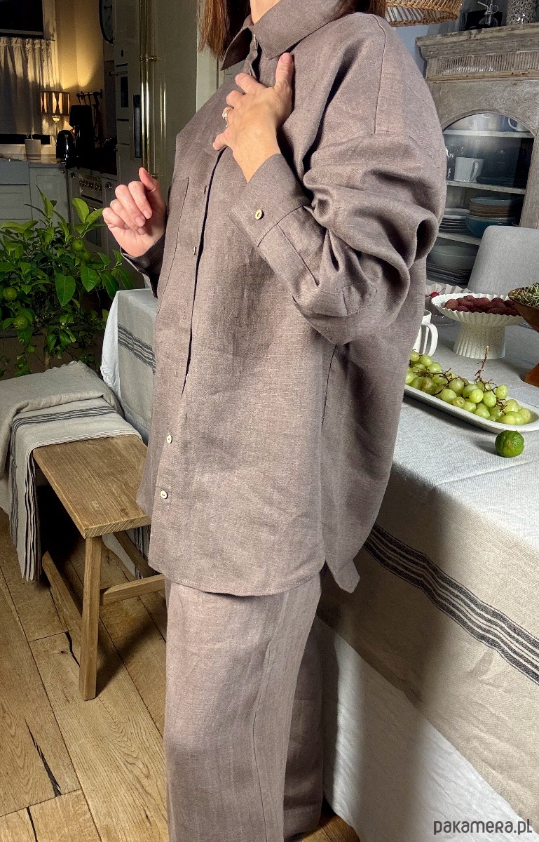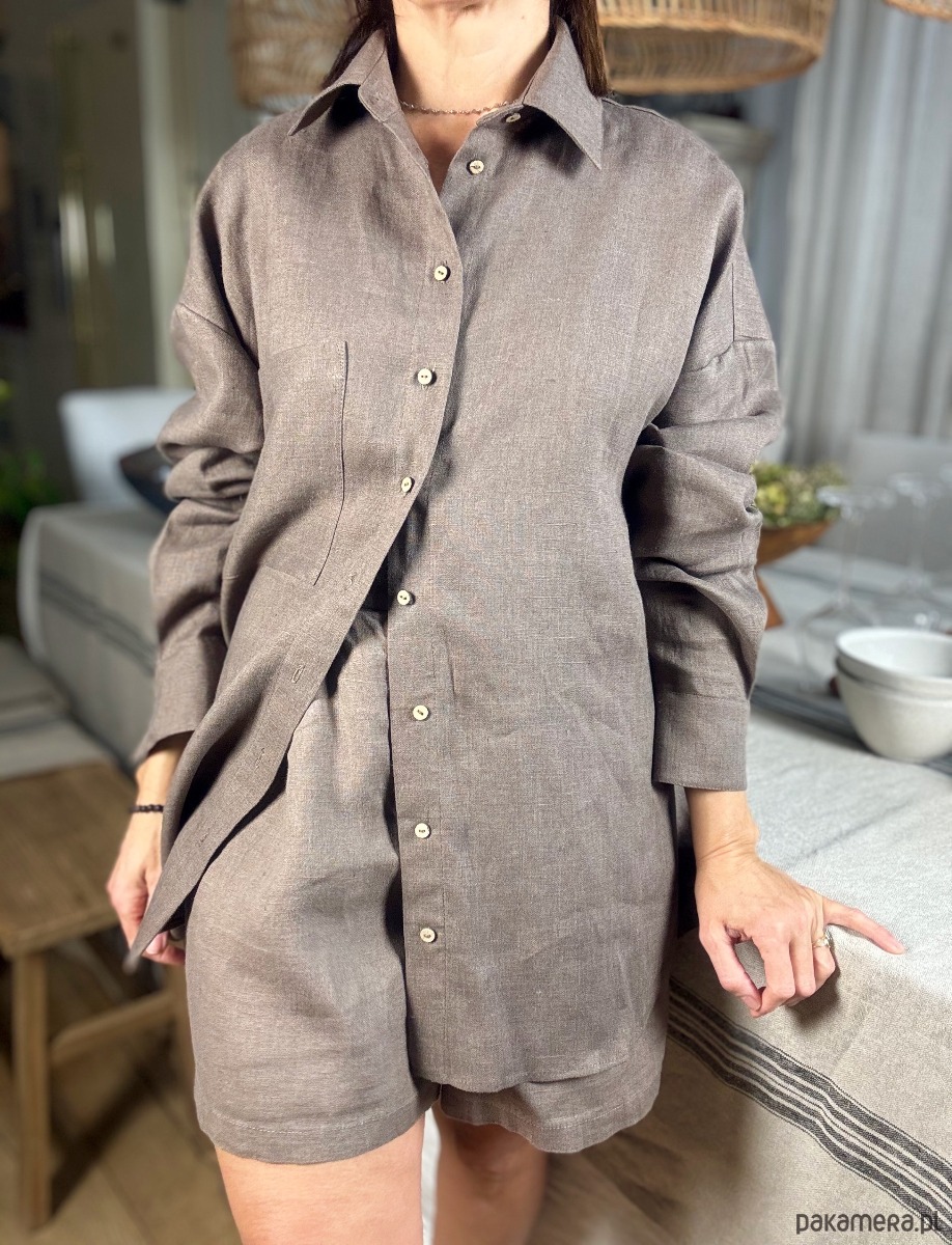 Koszula z kolekcji piżam Day & Night to propozycja łącząca wygodę z uniwersalnością. Stworzona z myślą o codziennych aktywnościach, sprawdzi się jako część domowego stroju, ale również jako elegancki element garderoby na co dzień. Naturalny len i krój oversize zapewnią maksymalny komfort i ponadczasowy styl.
