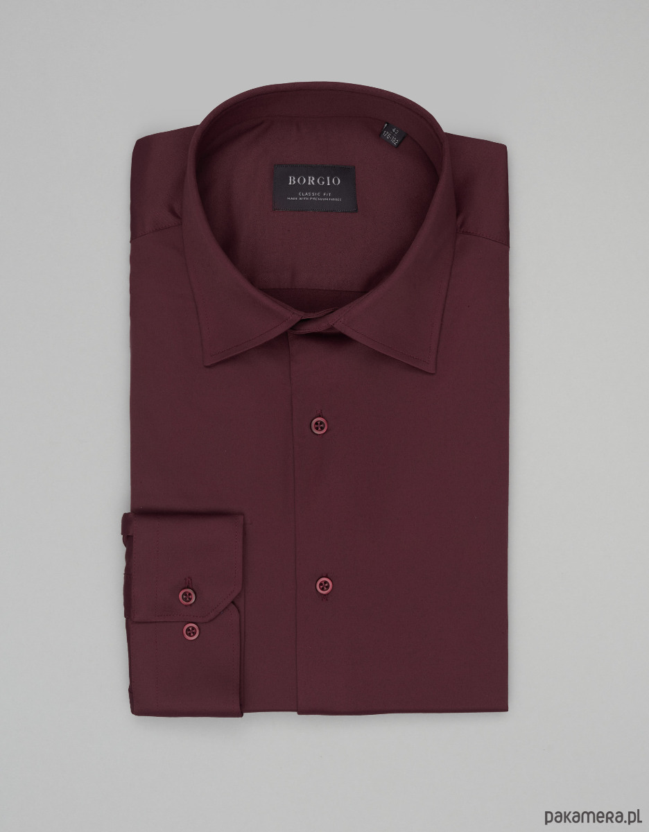 Koszula lumia 00638 długi rękaw bordowa classic fit