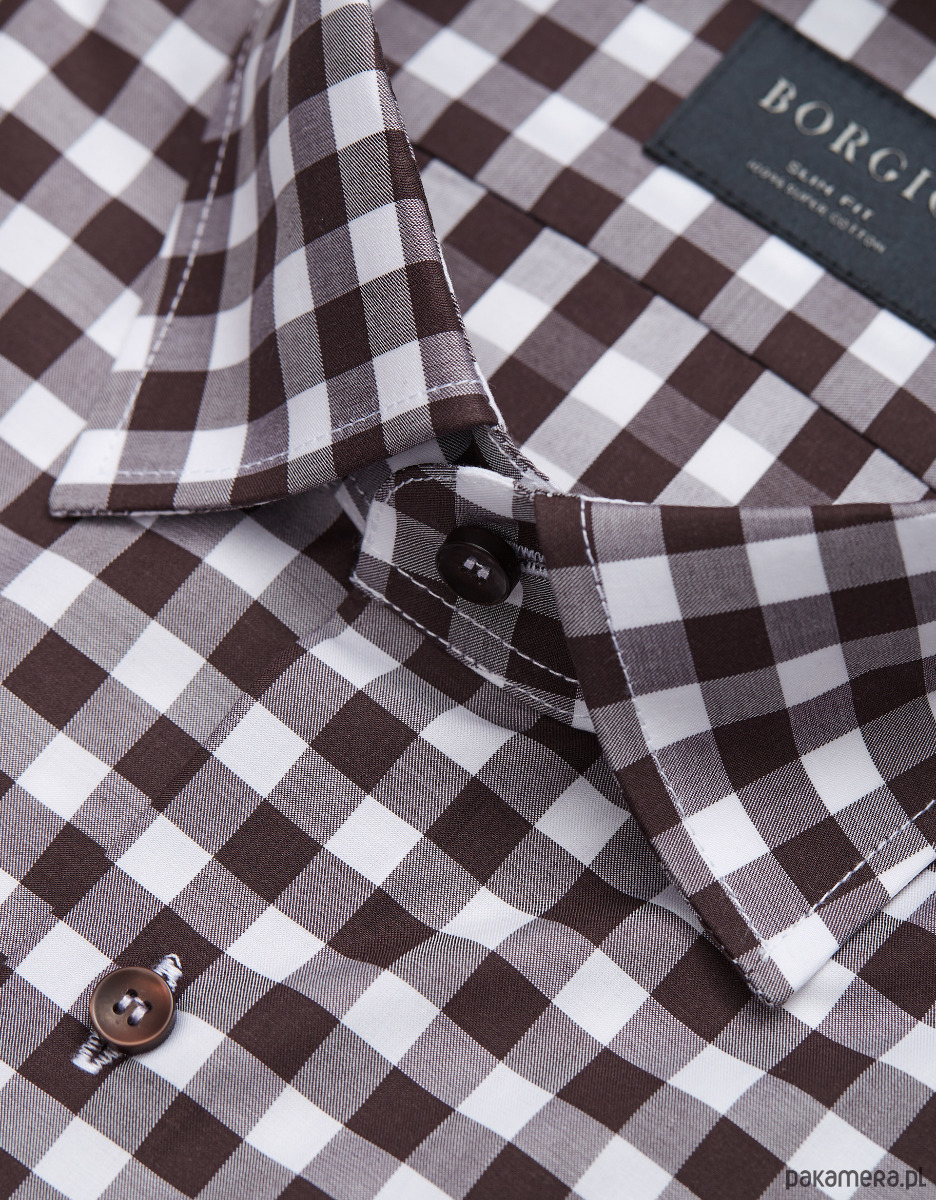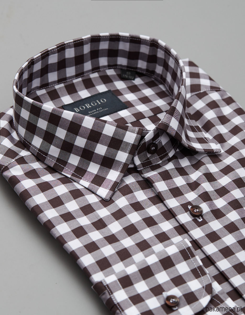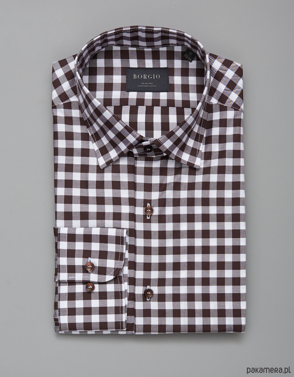 koszula matera 00243 długi rękaw brąz slim fit 176/182 40