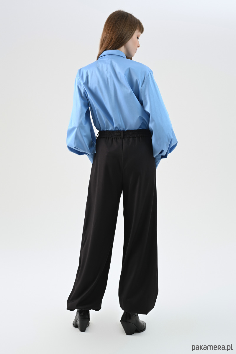 Model ma obszerne, bufiaste rękawy zakończone szerokimi mankietami zapinanymi na guziki.
