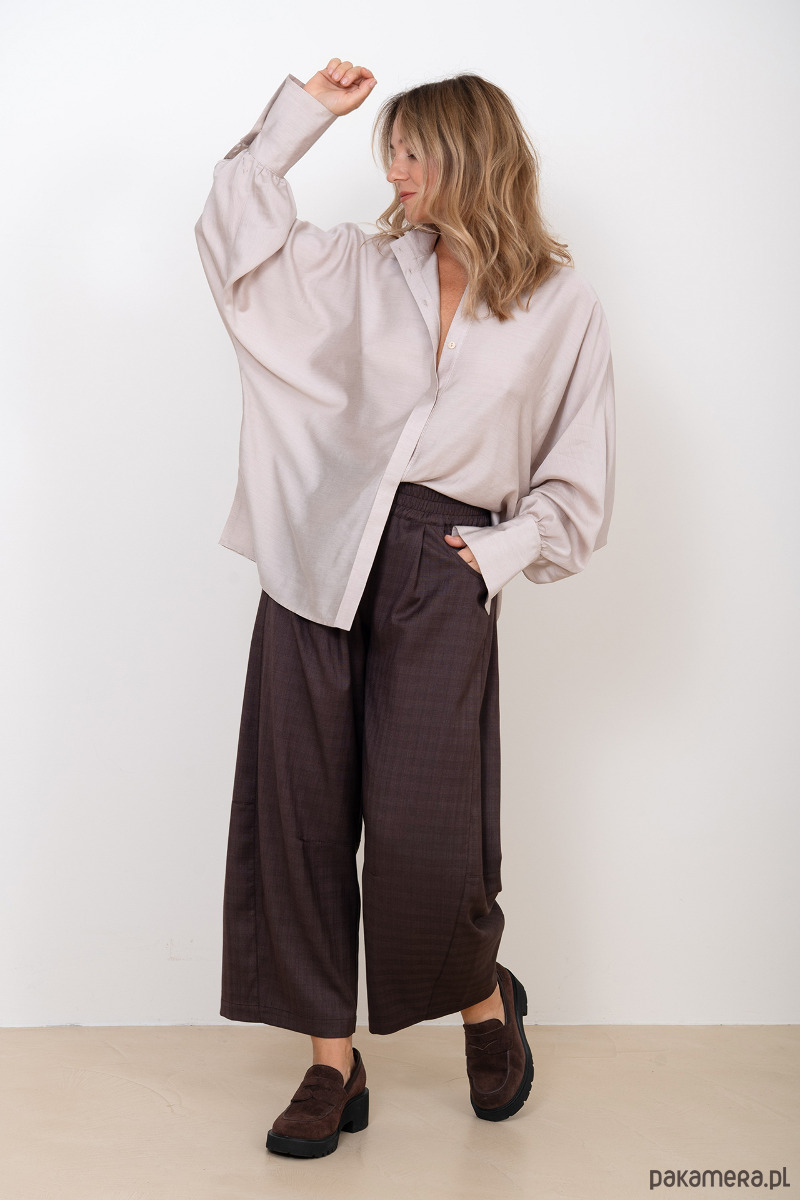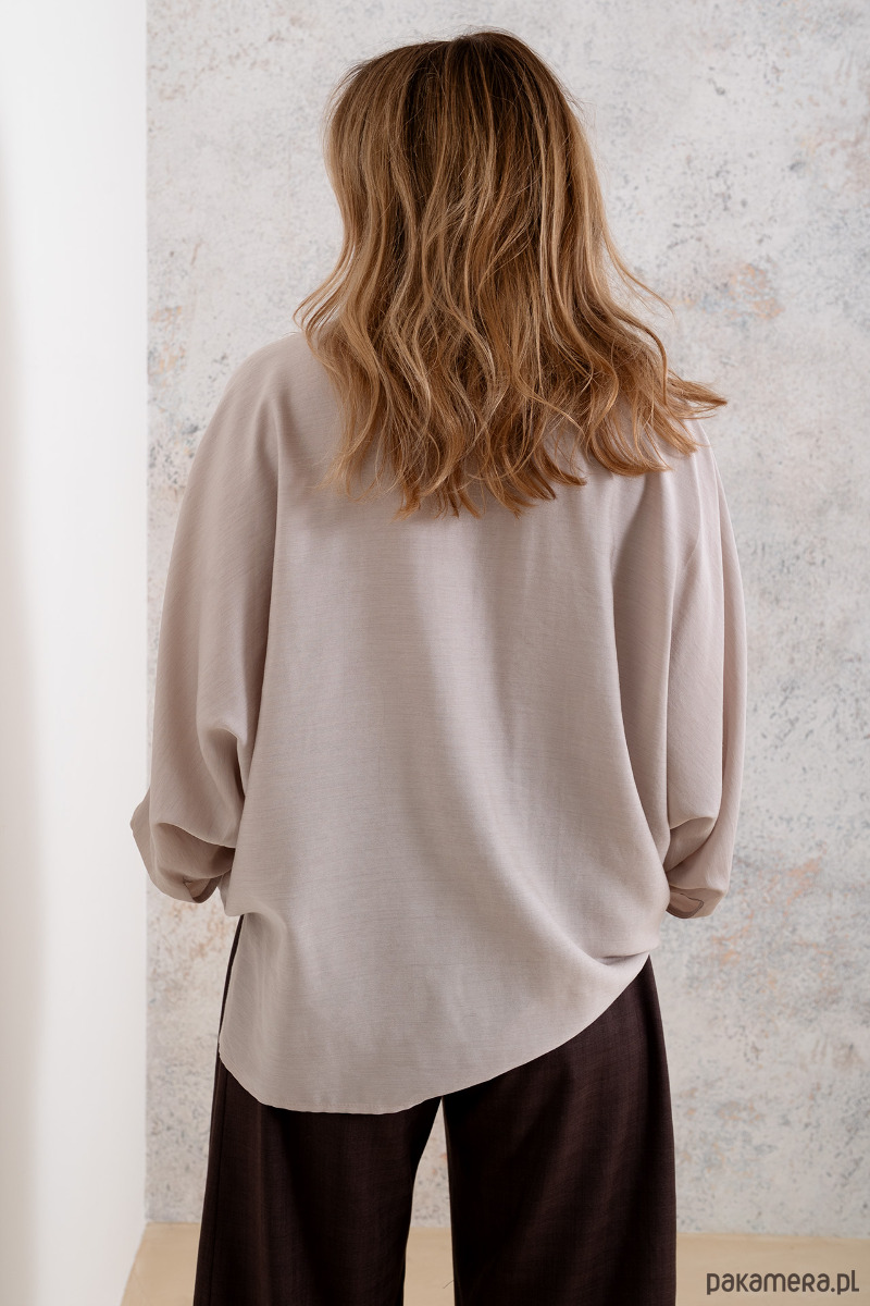 Luźny oversizowy krój z delikatnie obniżoną liną ramionnadaje jej nowoczesny charakter, a stonowany odcień czekolady wprowadza ciepło i klasę do każdej stylizacji.