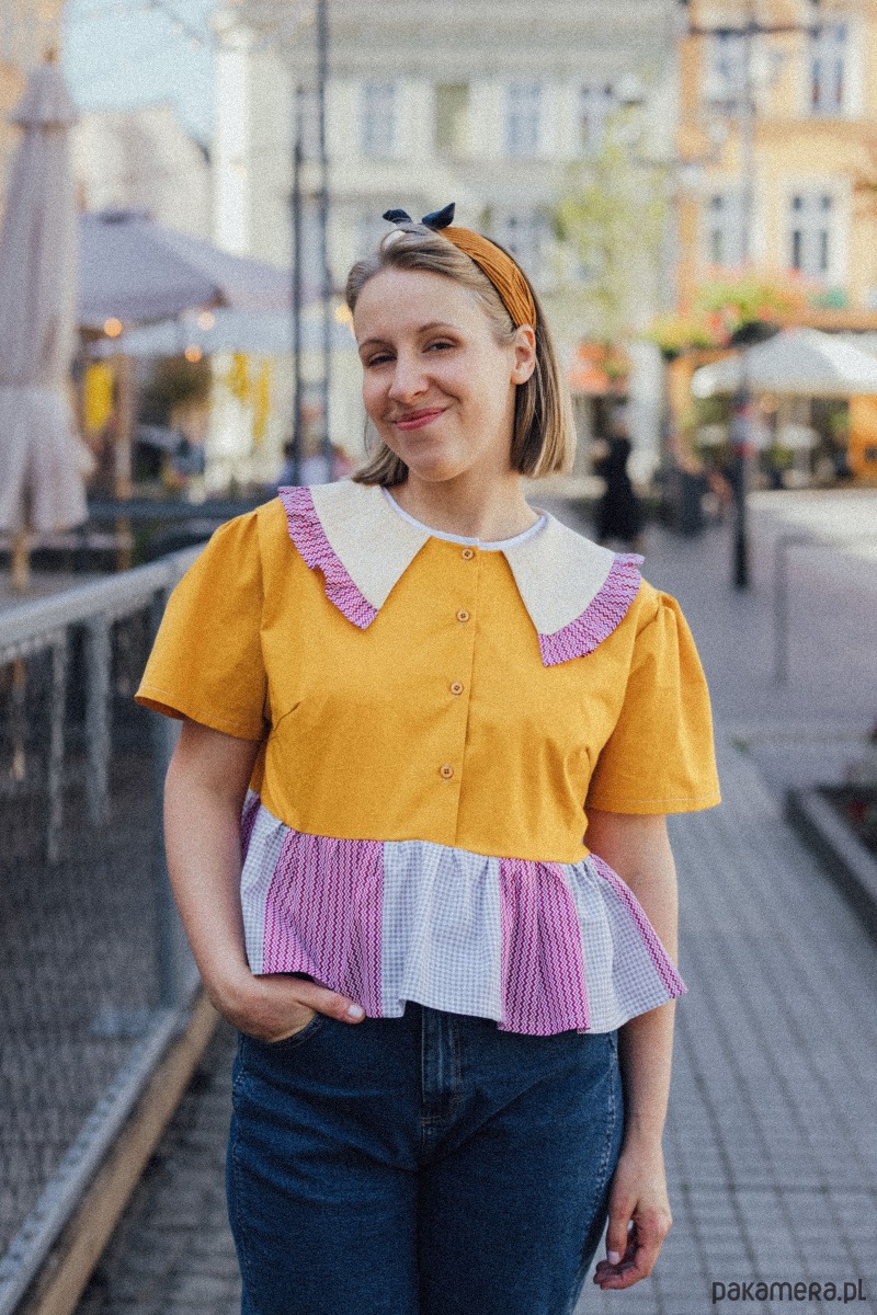 Koszula patchworkowa handmade stworzona z odzyskanych tkanin.
