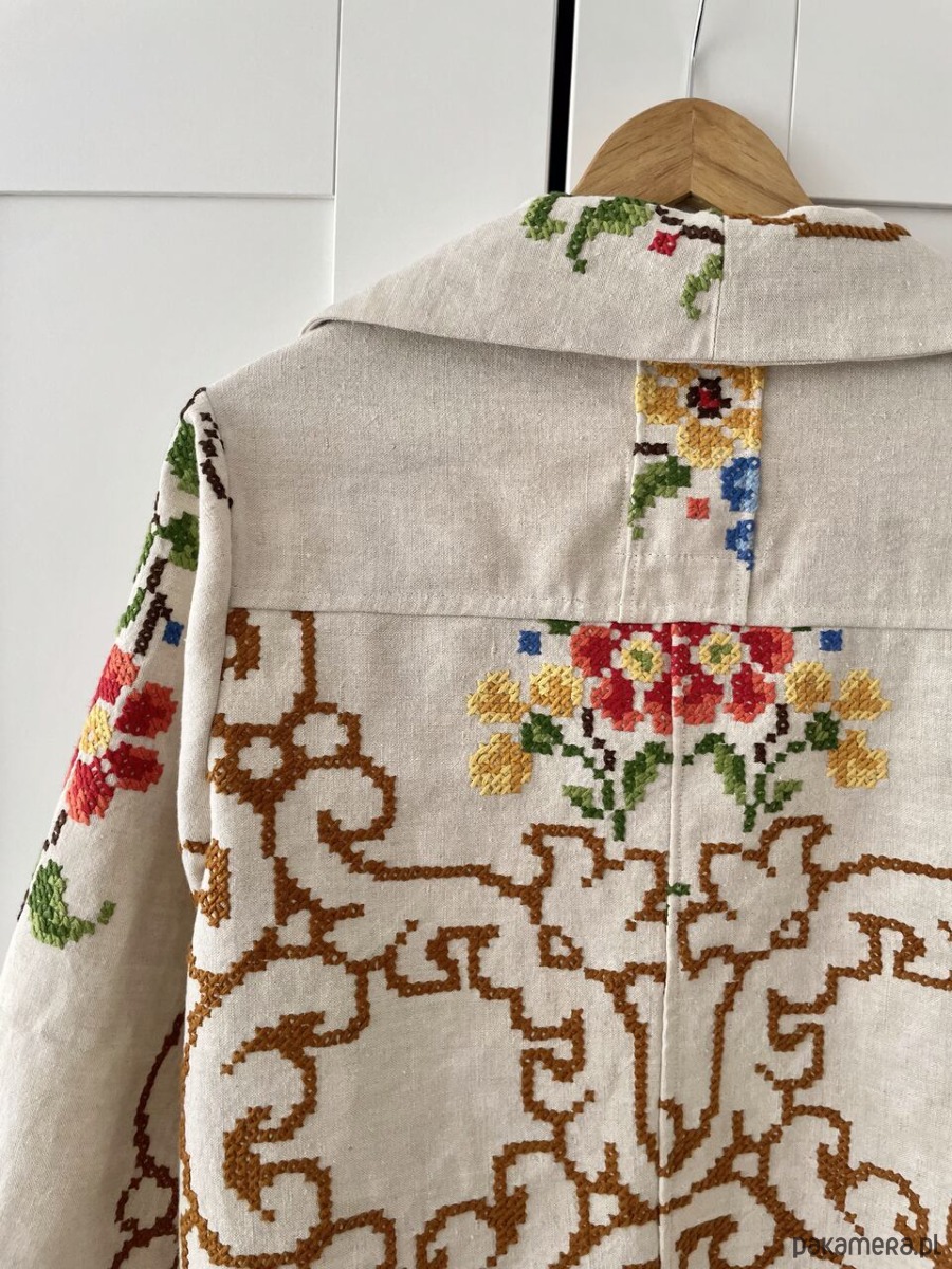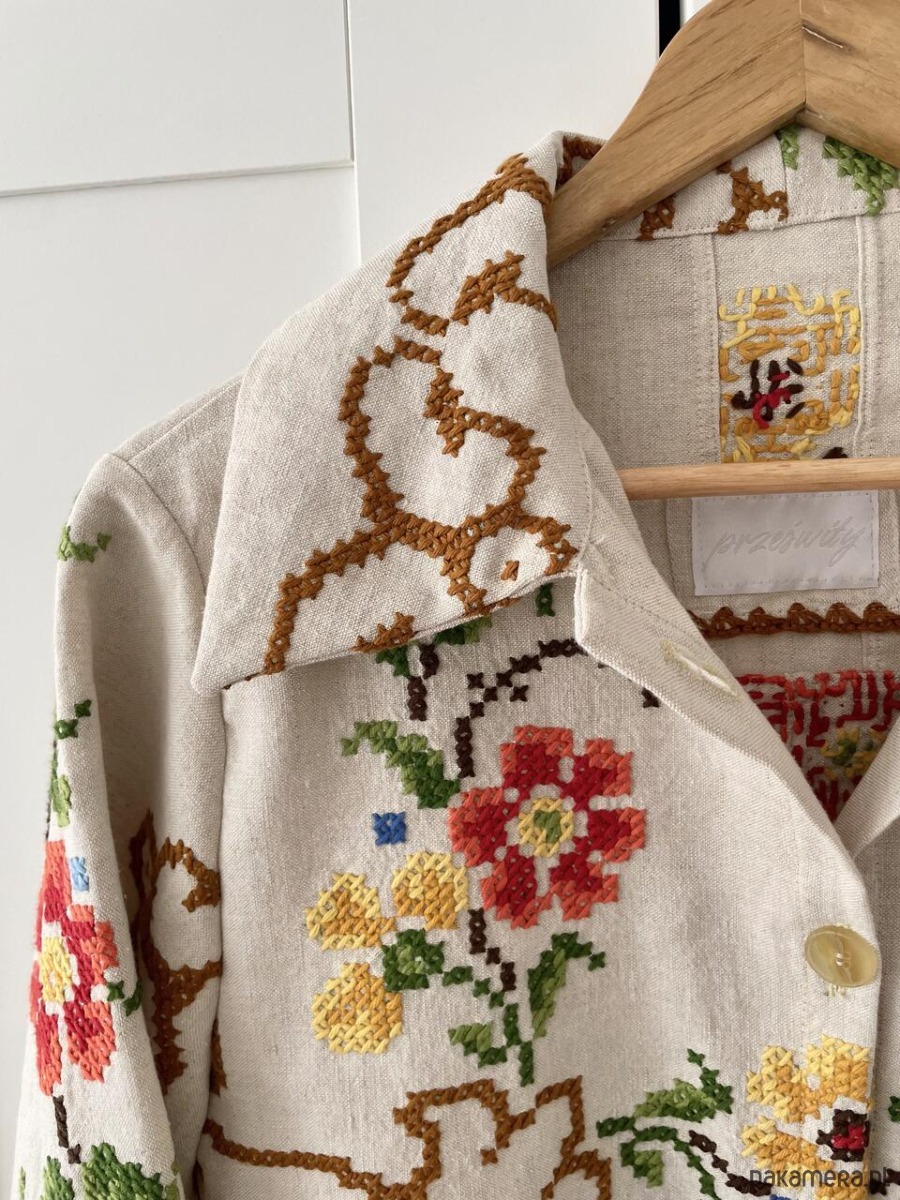 Każdy produkt powstaje z tkanin z drugiego obiegu, dlatego mogą pojawić się na nich niewielkie ślady użytkowania. Zawsze staramy się je odczarować: haftem, kompozycją, detalem. Prosimy o wyrozumiałość, to naturalna część pracy z materiałami, które już miały swoje życie.