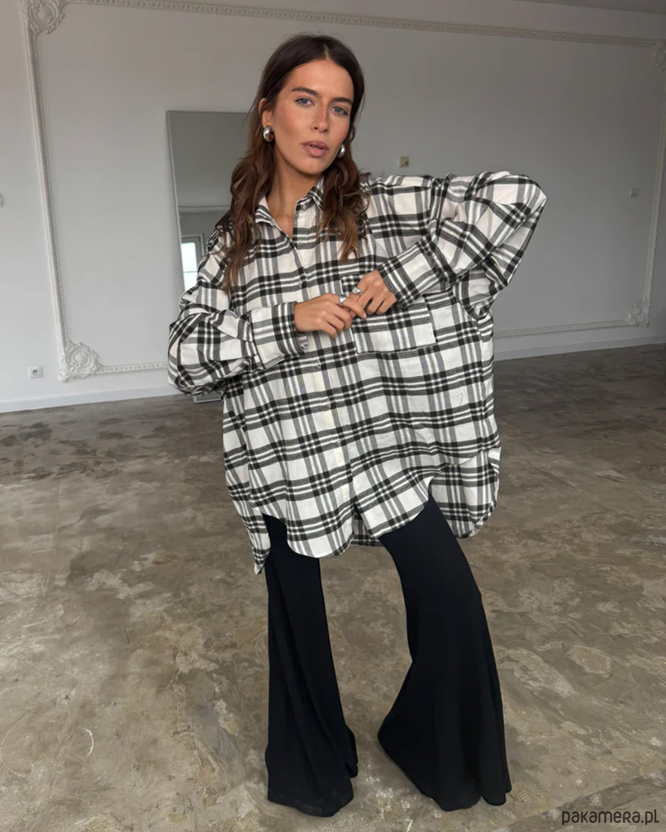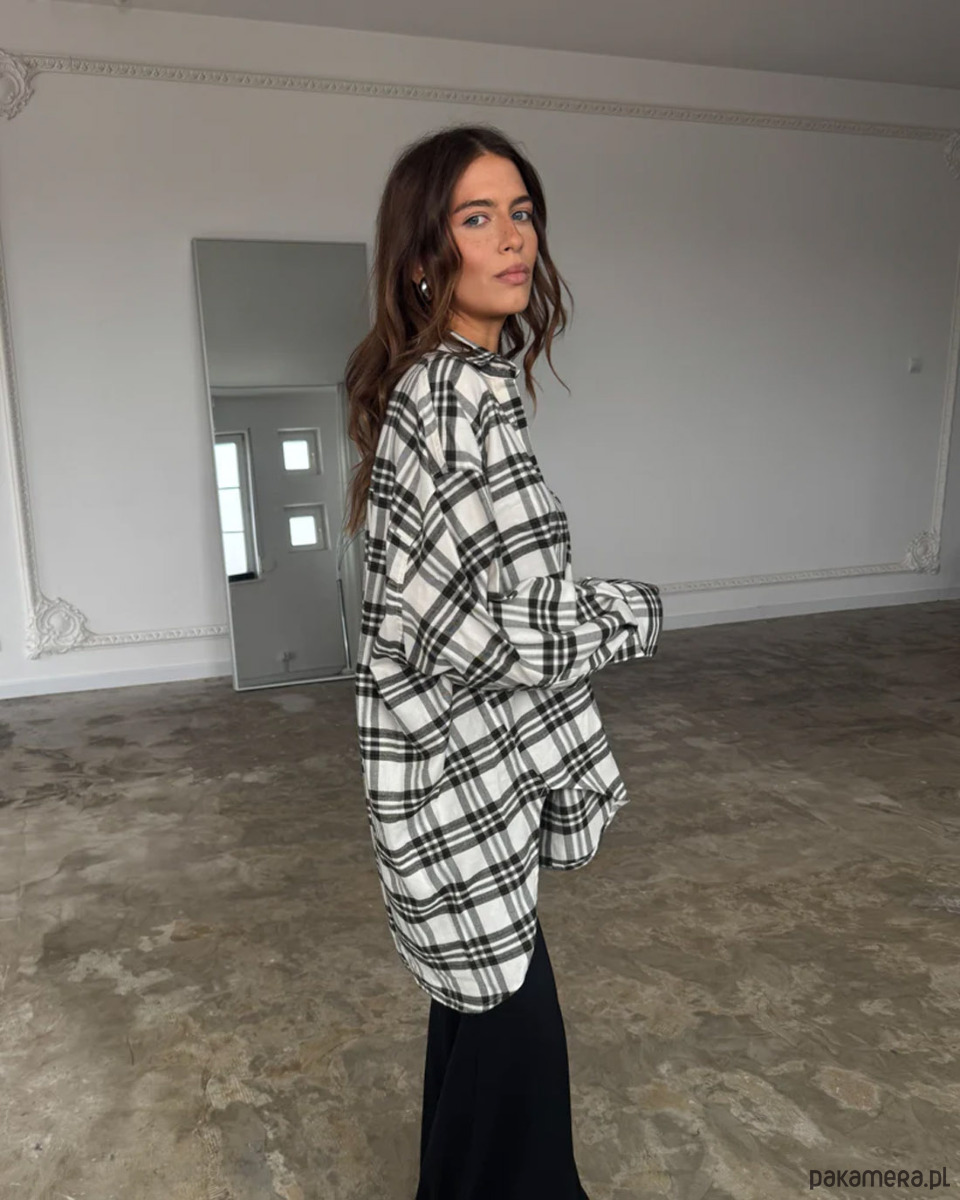 Koszula Calm w klasycznym zestawieniu black & white to esencja ponadczasowego minimalizmu i spokojnej elegancji. Kontrastowa kratka nadaje całości wyrazistości, jednocześnie pozostając neutralna i łatwa do stylizowania. To model dla kobiet, które cenią prostotę formy, ale oczekują charakteru w detalu.