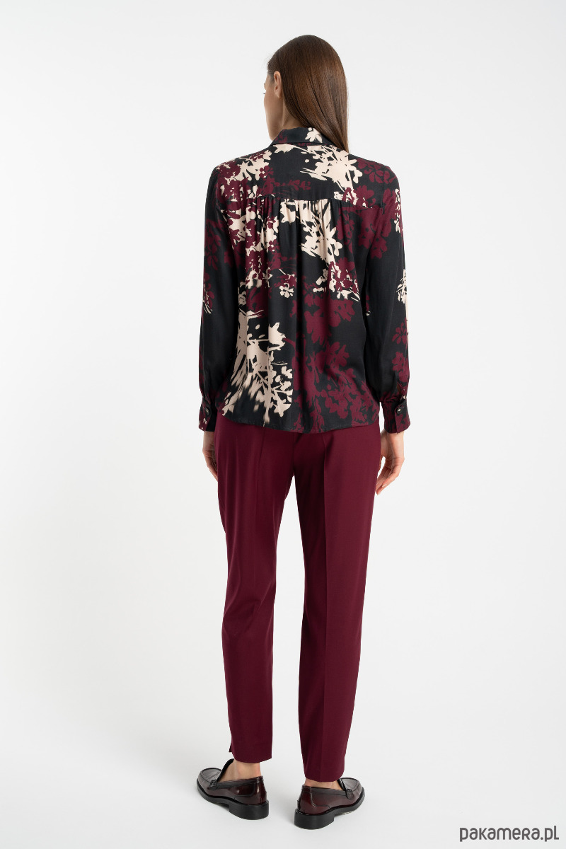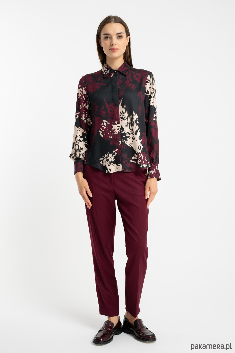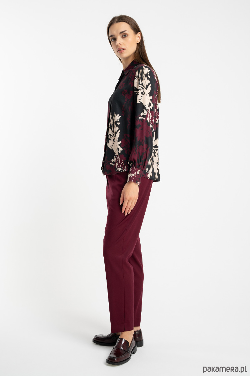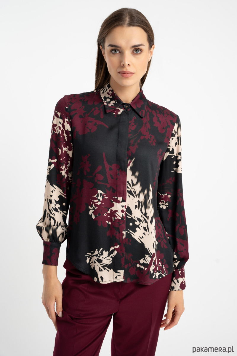 Posiada klasyczny kołnierzyk, kryte zapięcie na guziki oraz delikatnie bufiasty rękaw.