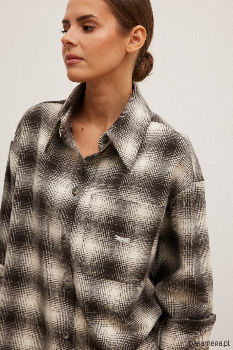 Koszula w kratę powinna znaleźć się w każdej szafie. Ta została uszyta z cienkiej niczym mgiełka bawełnianej tkaniny, przyjemnej dla ciała równie jak flanela. Do jeansów, dresów i skórzanych spodni.