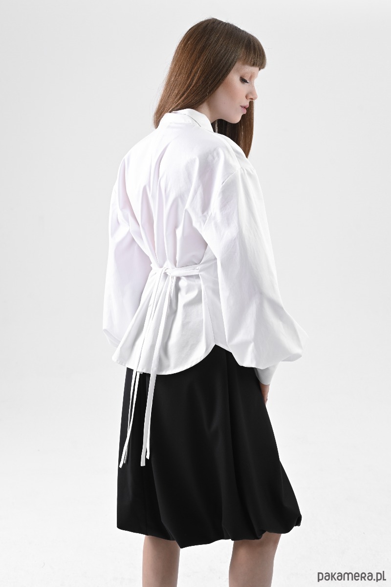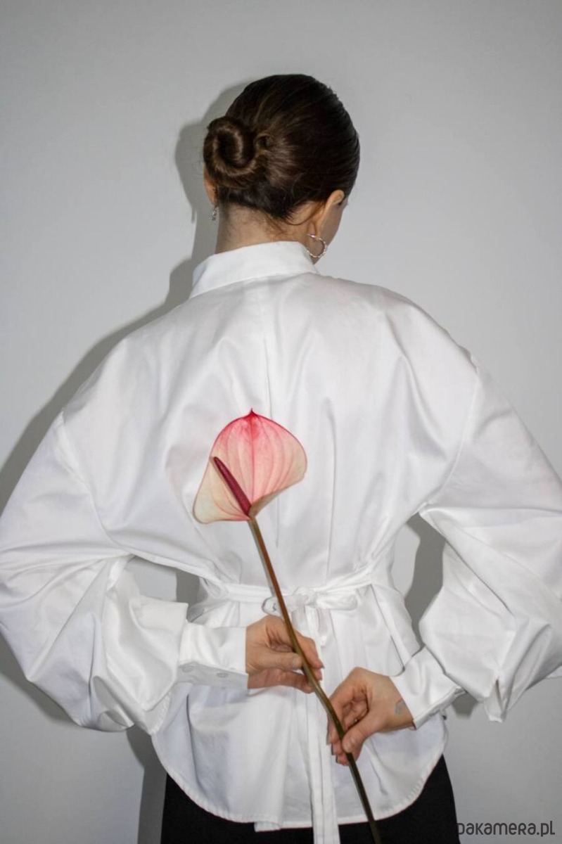 Skład: 97% bawełna, 3% elastan. Krój: Oversize z opcją taliowania (wiązanie z tyłu).