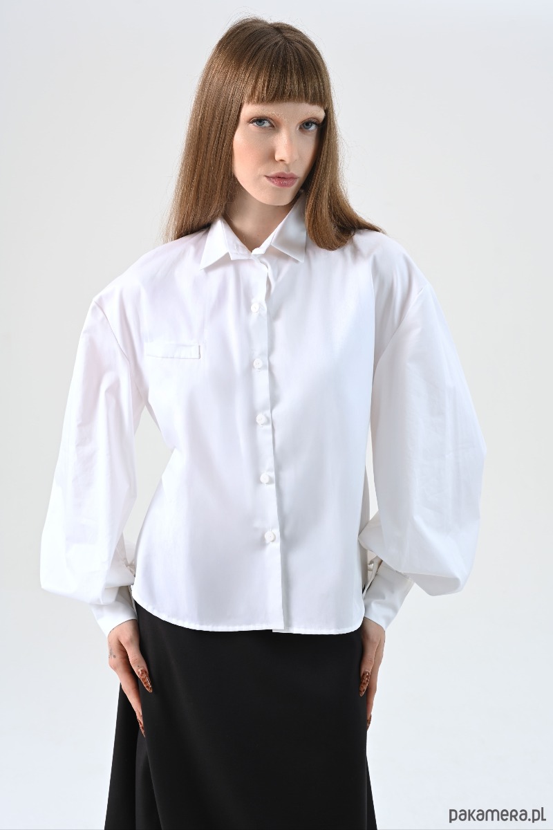 To, co wyróżnia ten model, to szerokie, bufiaste rękawy, które robią "cały look". Są efektowne, nowoczesne i dodają charakteru nawet najprostszej stylizacji z jeansami.