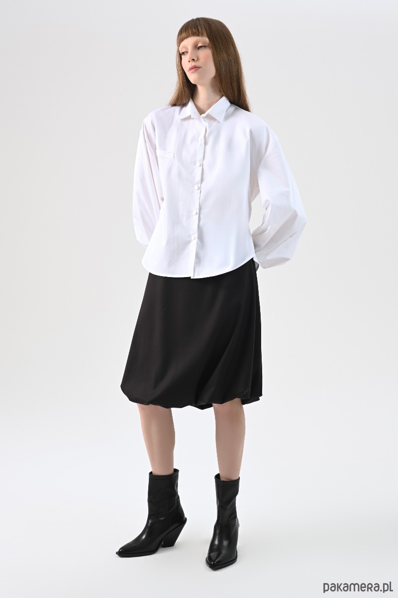 Jak ją nosić? Zestaw ją z czarną spódnicą maxi dla minimalistycznego vibe'u (jak na zdjęciu!), zarzuć na crop top, albo wpuść niedbale w ulubione mom jeansy.