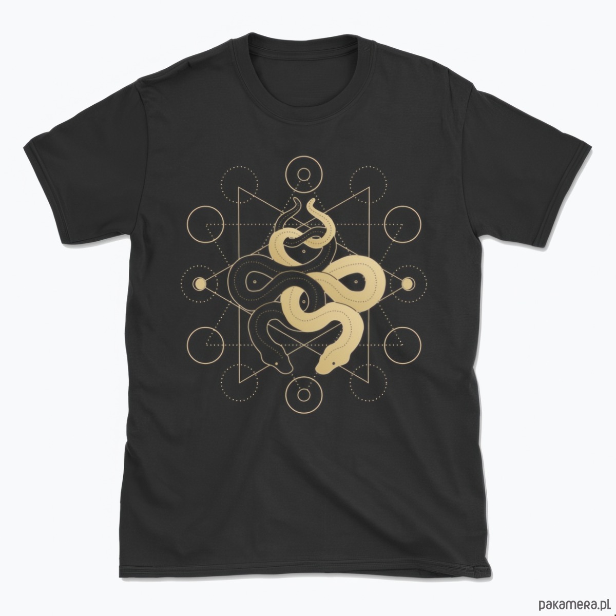 Seria koszulek inspirowana mistycyzmem, w której znajdziesz motywy węży, owadów, dłoni czarownicy oraz geometrycznych symboli. Każdy z nadruków łączy w sobie głęboką symbolikę pradawnych wierzeń i rytuałów. Węże, od wieków uznawane za symbole odrodzenia i transformacji, wiją się w harmonii z precyzyjnie zaprojektowaną świętą geometrią. Dłonie czarownicy przywodzą na myśl siły tajemne, moc rytuałów oraz kontakt z nieznanym. Geometryczne wzory, pełne mistycznej energii, tworzą równowagę między światem duchowym a materialnym, nadając każdej koszulce unikalny, magiczny charakter.