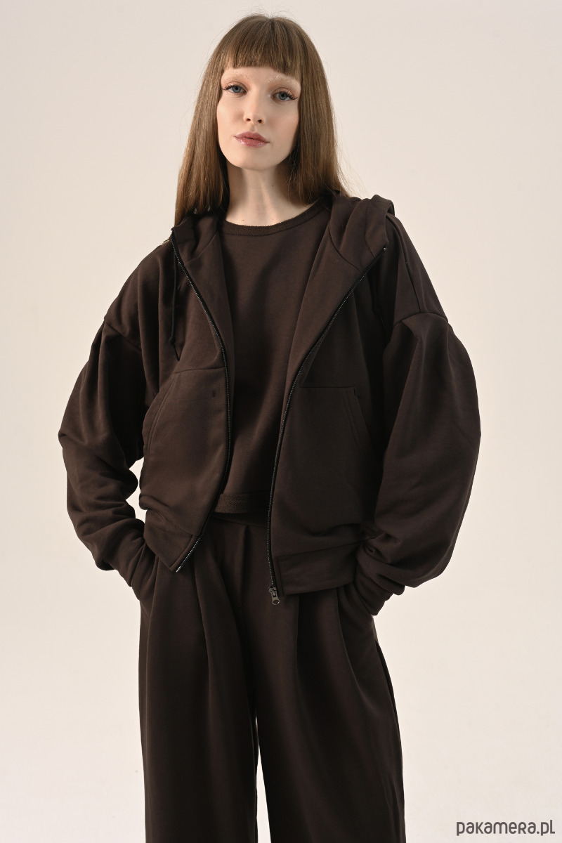 To model, który nie tylko świetnie wygląda solo, lecz także wyjątkowo dobrze prezentuje się w komplecie. Idealnie pasuje do spodni i bluzy uszytych z tego samego materiału, tworząc spójny, modny set, który możesz nosić zarówno na co dzień, jak i na bardziej stylowe wyjścia. J