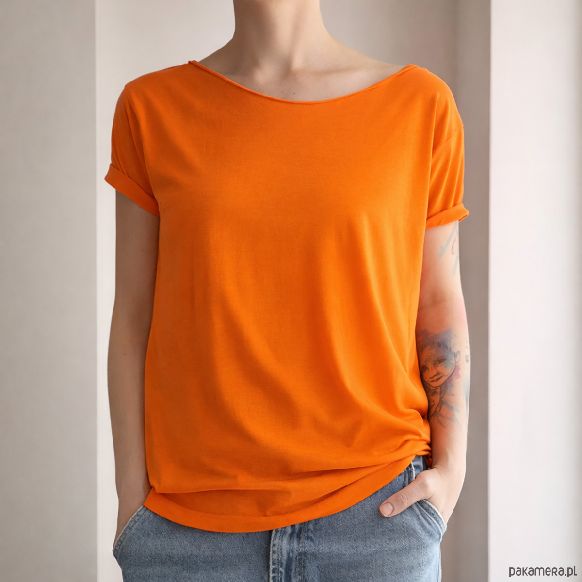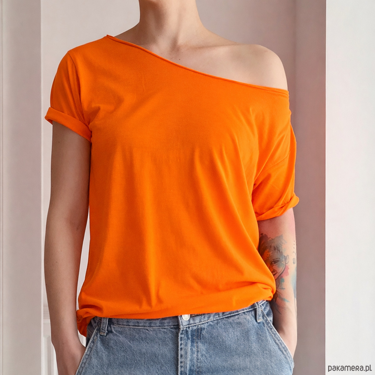 Energetyczny, neonowy pomarańcz przyciąga spojrzenia i świetnie kontrastuje z czernią, denimem czy jasnymi odcieniami. Jedna koszulka, która od razu nadaje wyraz stylizacji.