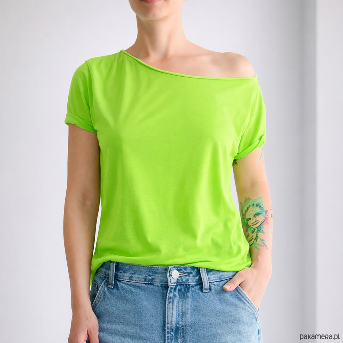 Damska koszulka oversize bez nadruku w intensywnym, fluo zielonym kolorze to mocny akcent w garderobie.