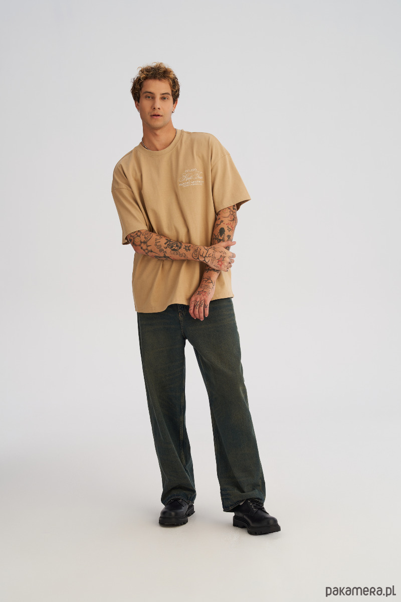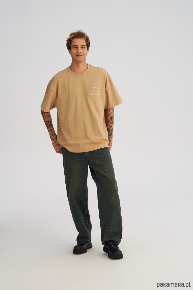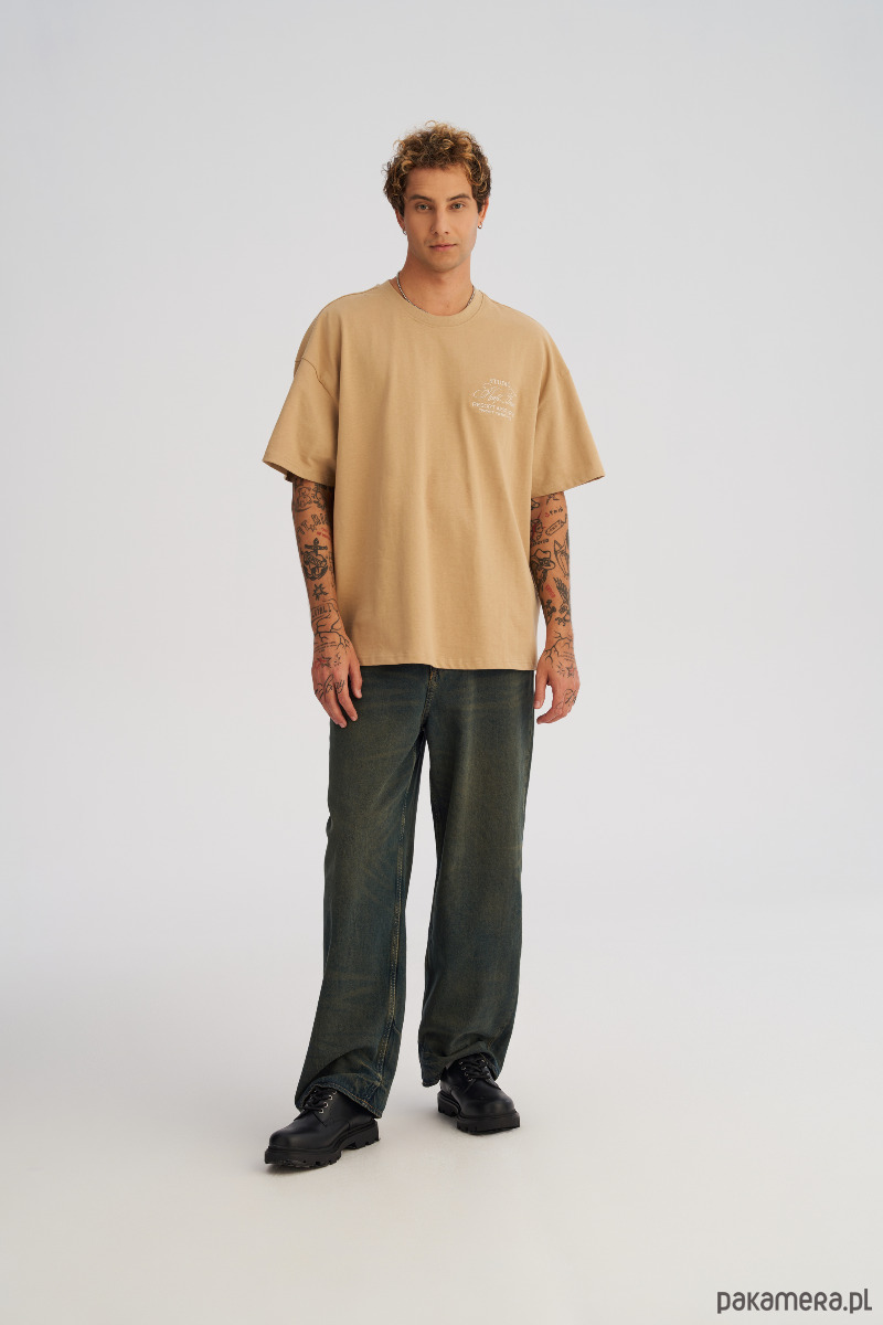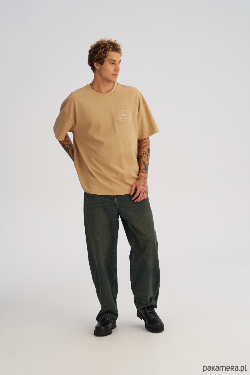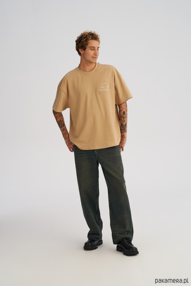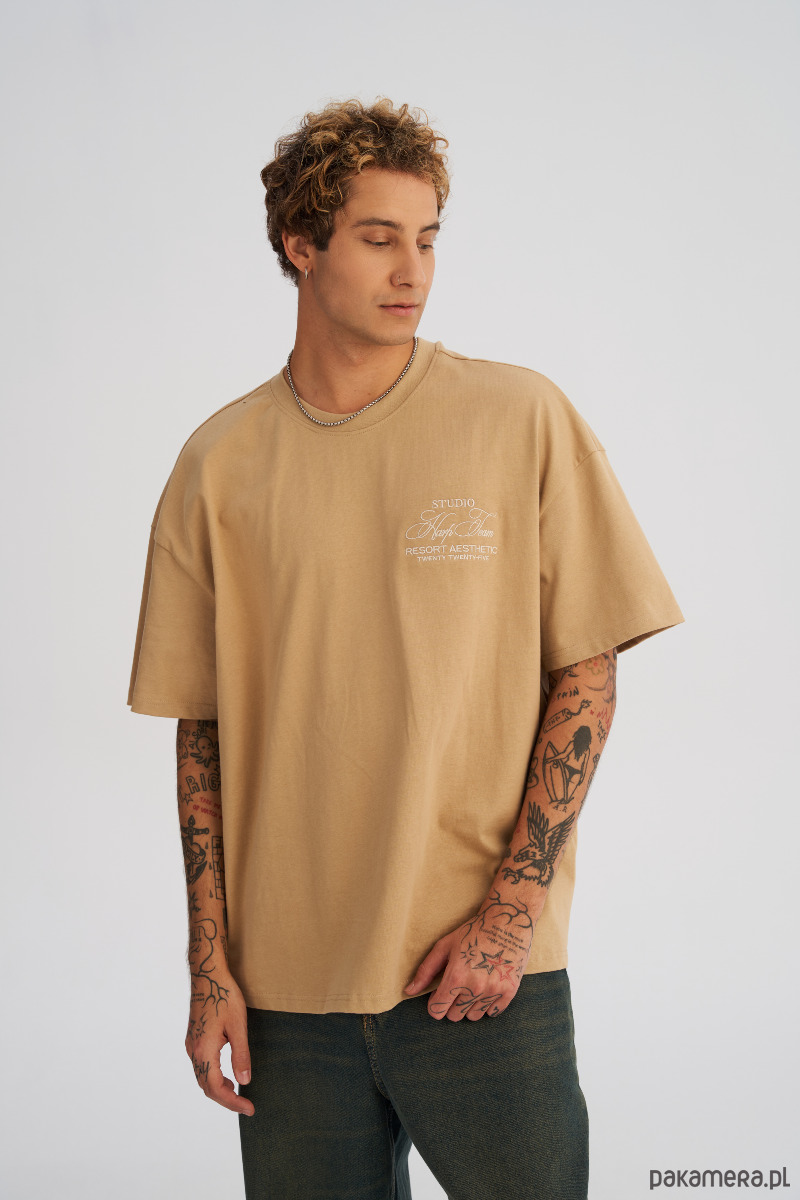 Koszulka męska BOXY FIT z ciężkiej bawełny beżowa